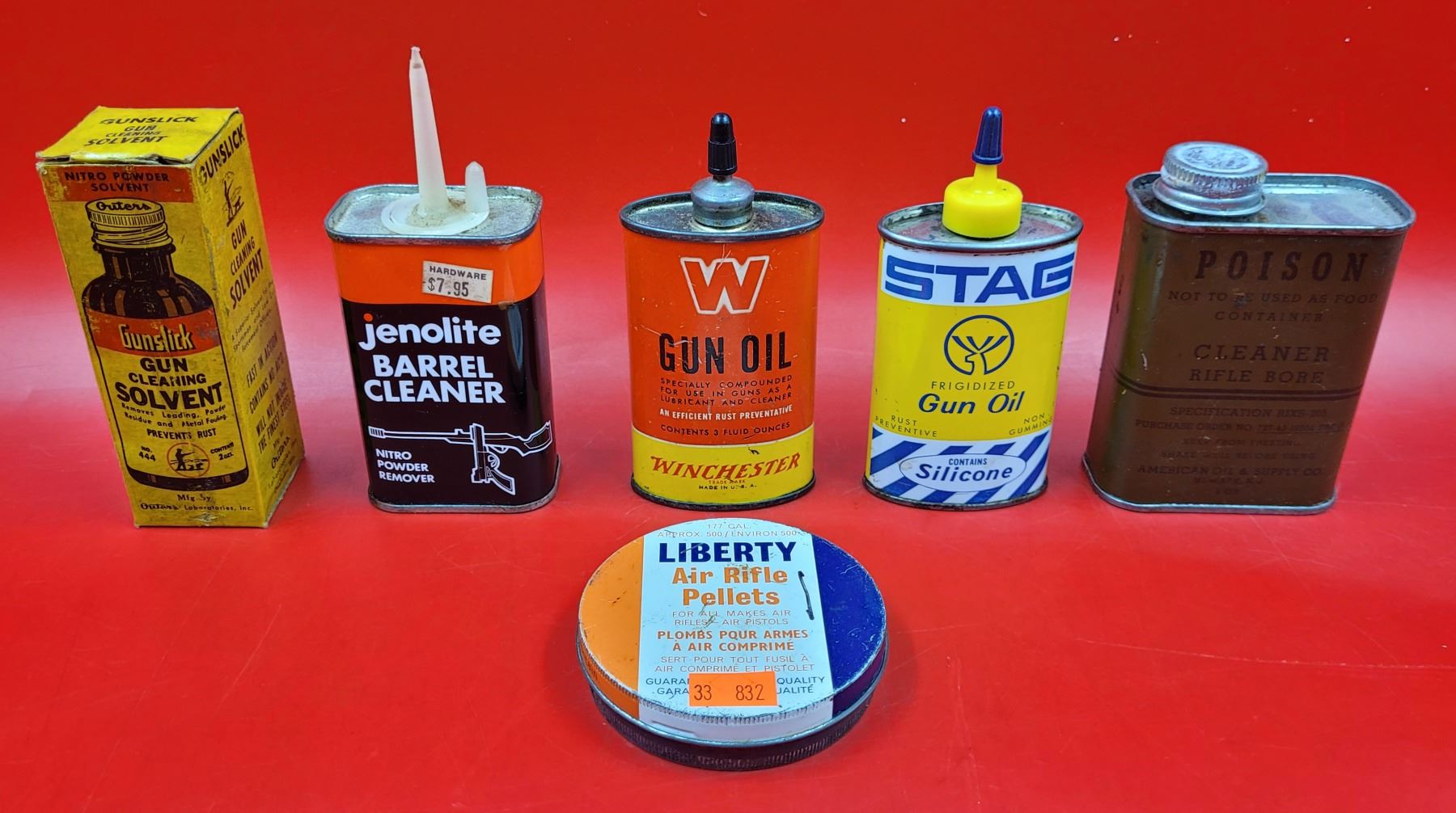 Lot of Gun Oil Cans, Cleaner, & Air Rifle Pellets
