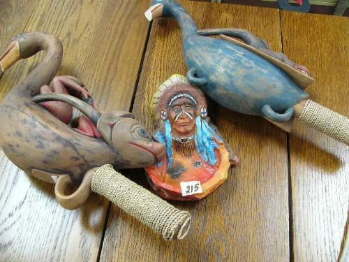 Lot of: Indian Chief Ashtray & 2 broken rattles(1)