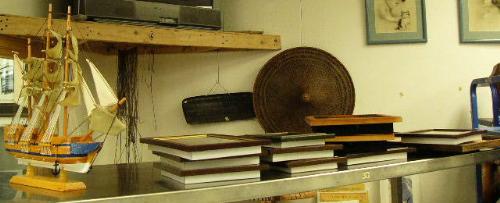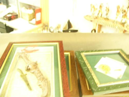 Lot of Nautical Items: Sailing ship, framed: butterflies, shells, daggers, and ships (2)