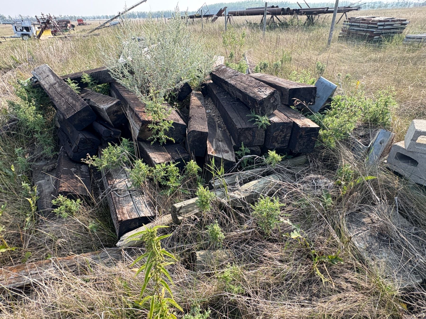 Lot of RR ties, cement blocks, 2x4's, misc. lumber