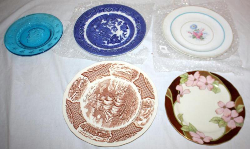 10" Blue Willow Plate Friendship of Salem Plate - Staffordshire by Alfred Meakin Limoges Plates (2) Decorative Plate signed with Registration numberJFK Commerative Glass Plate - Blue