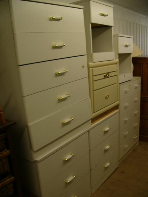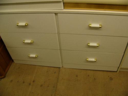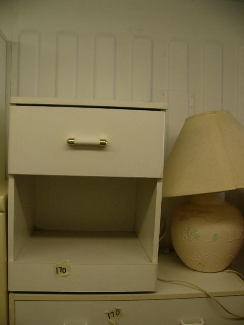 Lot of three white dressers , three night stands and a lamp (241)