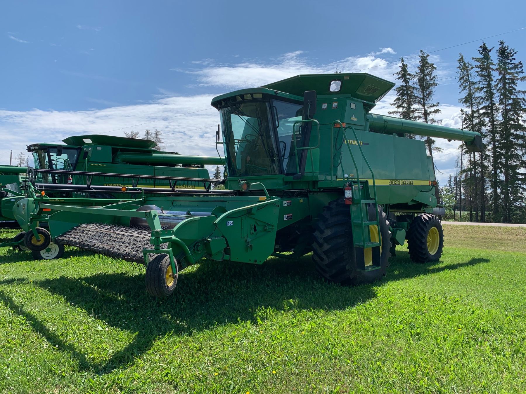 (Lot #'s 103, 104 & 105 are a Group Lot) John Deere 9610 Combine, 2418 eng. Hrs, 1680 threshing hrs, chaff spreader, SN. 9610X677747 c/w John Deer 914 Header, SN. H0914W675691, shedded. PH Bob (780) 264-0821 OR Dean (780) 264-0752