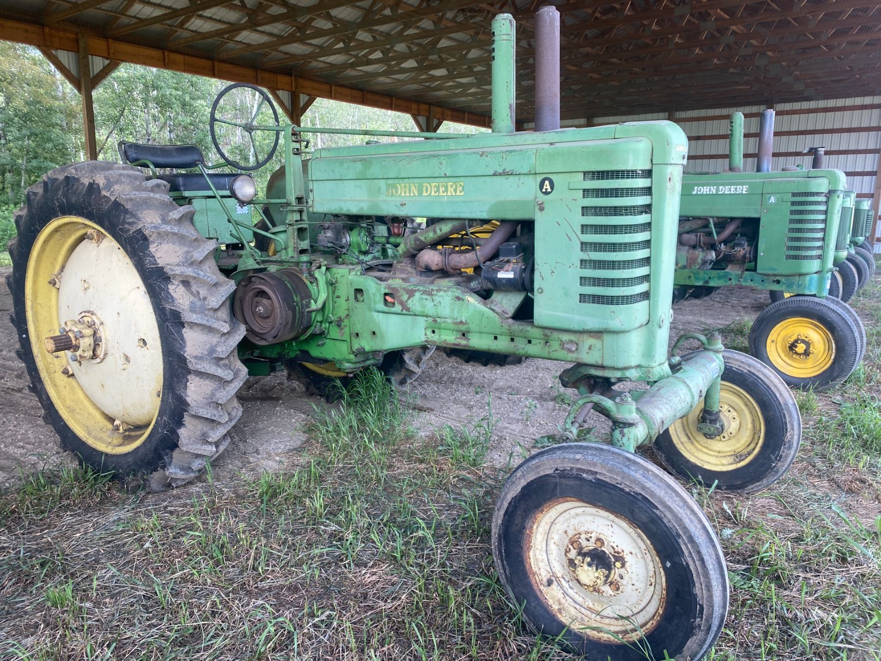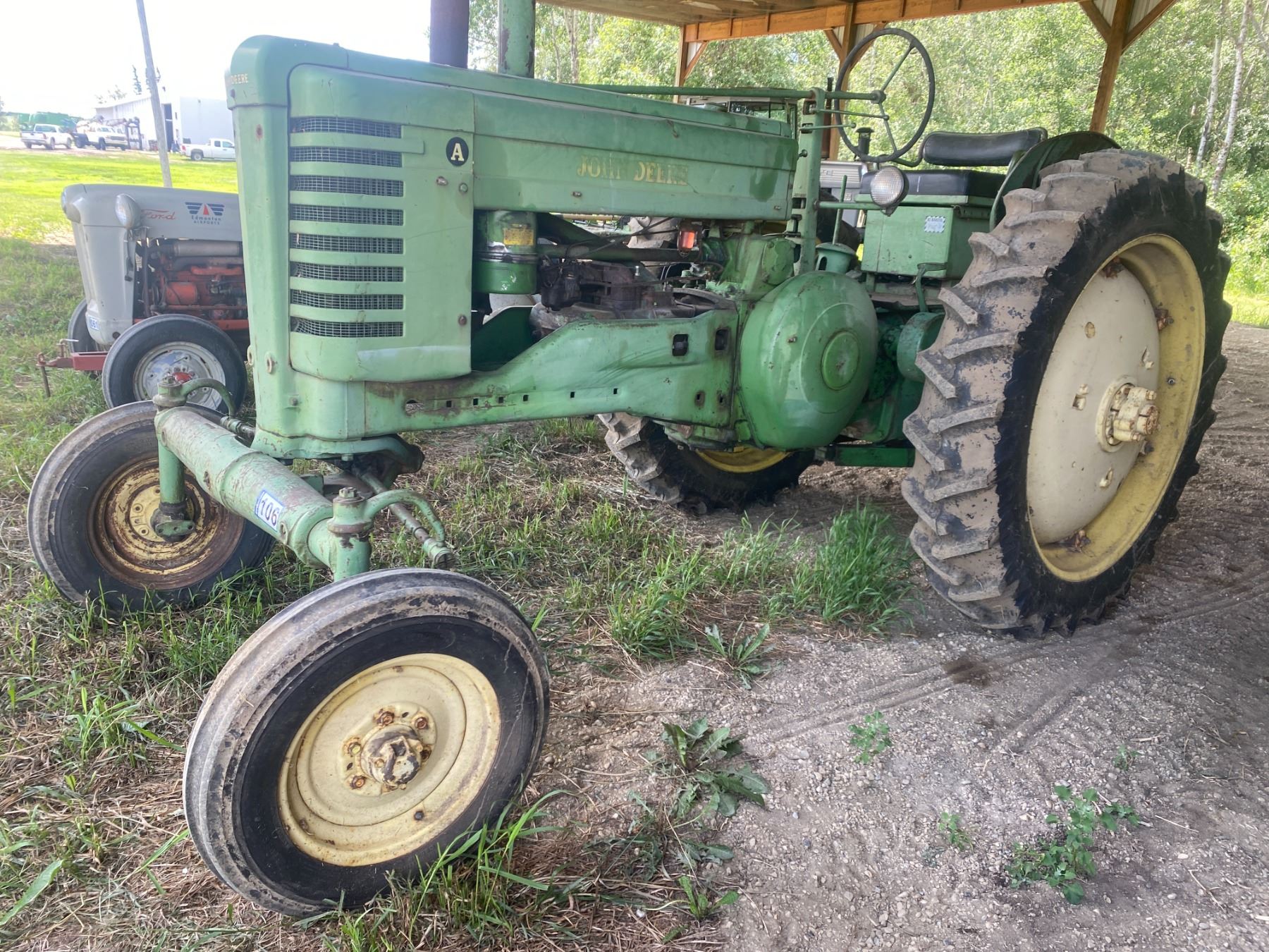 (Lot #'s 106, 107, 108, 109, 110 & 111 are a Group Lot) JD 'A' TRACTOR, SN. 612731, all original, Running, rock shaft, pulley, hyds., new 12.4x42's, PTO, back wheels are loose on hubs