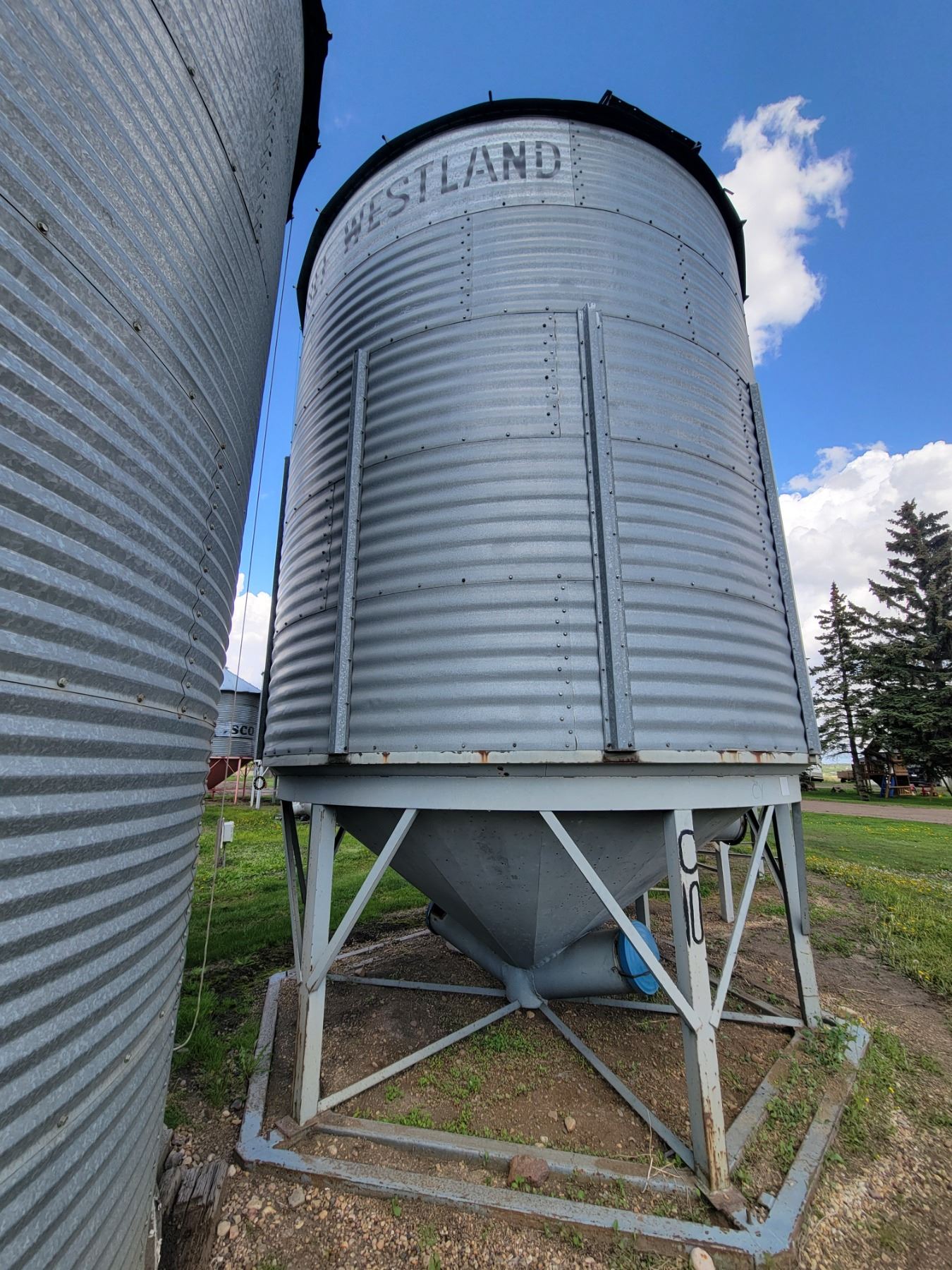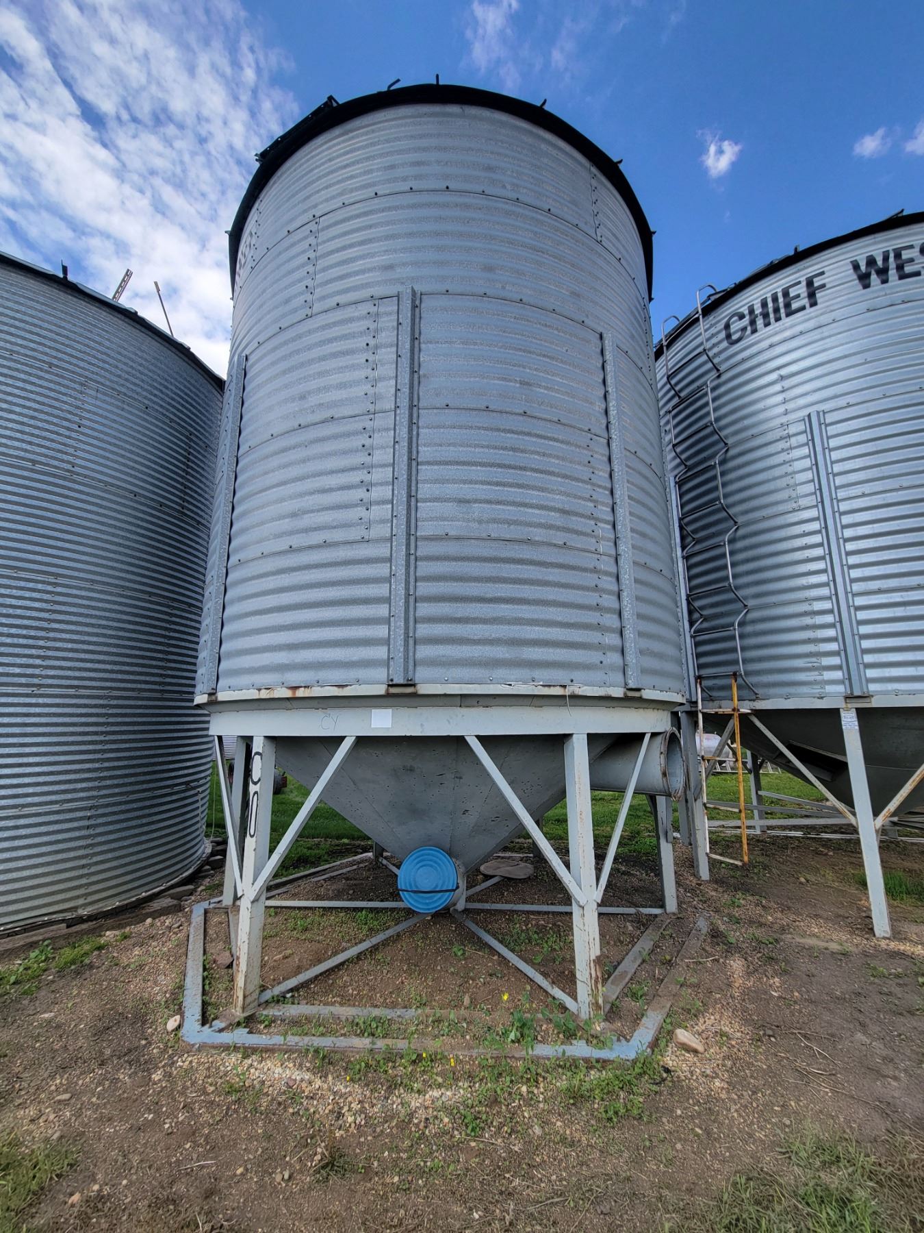 (Lot #'s 199, 200 & 201 are a Group Lot) Chief Westland Hopper Bin 14' dia. x 5-ring, approx. 2000 Bu, double chute, aeration tube, double skid, remote lid. To Be Moved by December 31st, 2025. Located: 21121 31 St, NE, Edmonton. PH: Todd (780) 499-5060