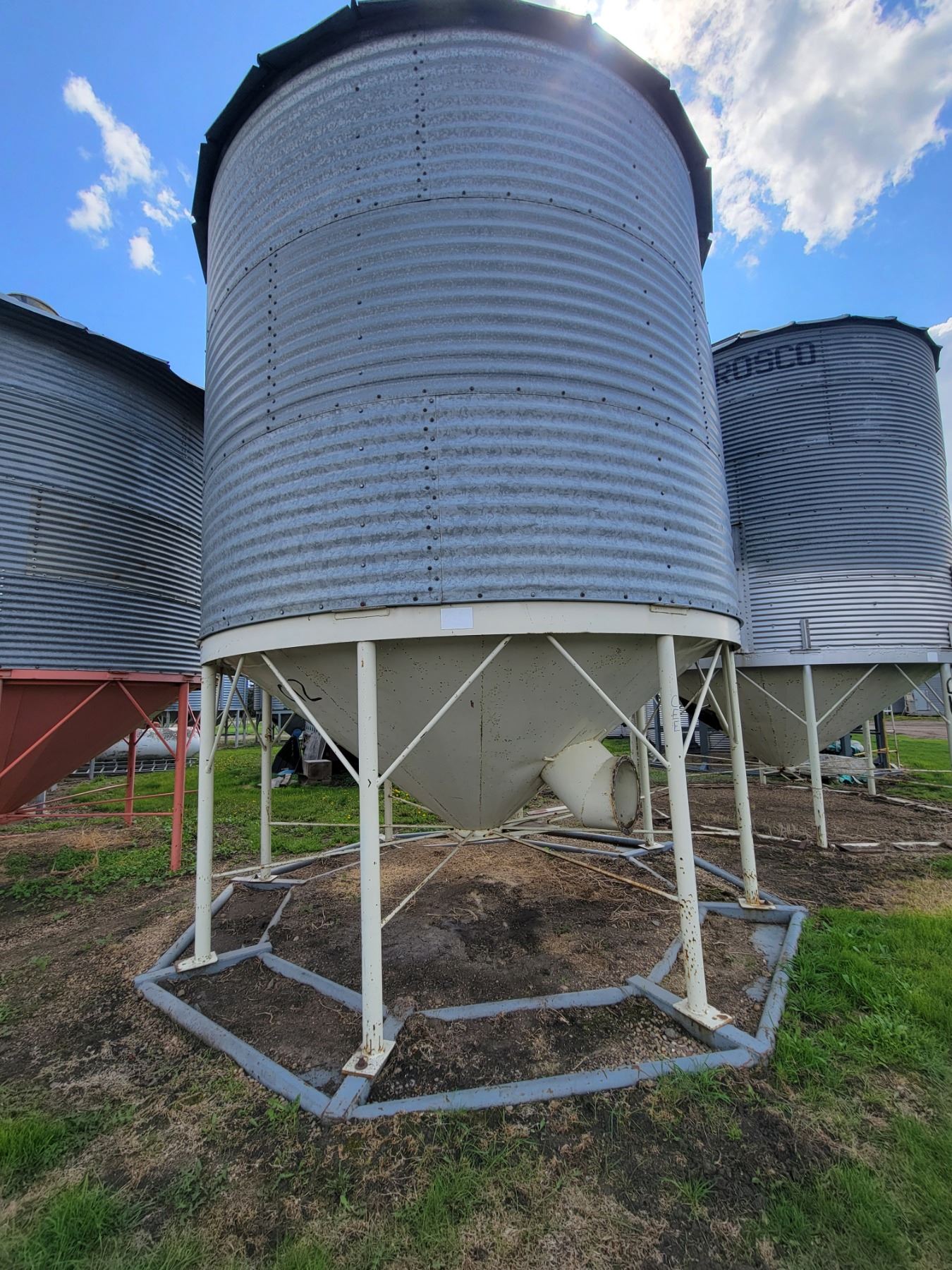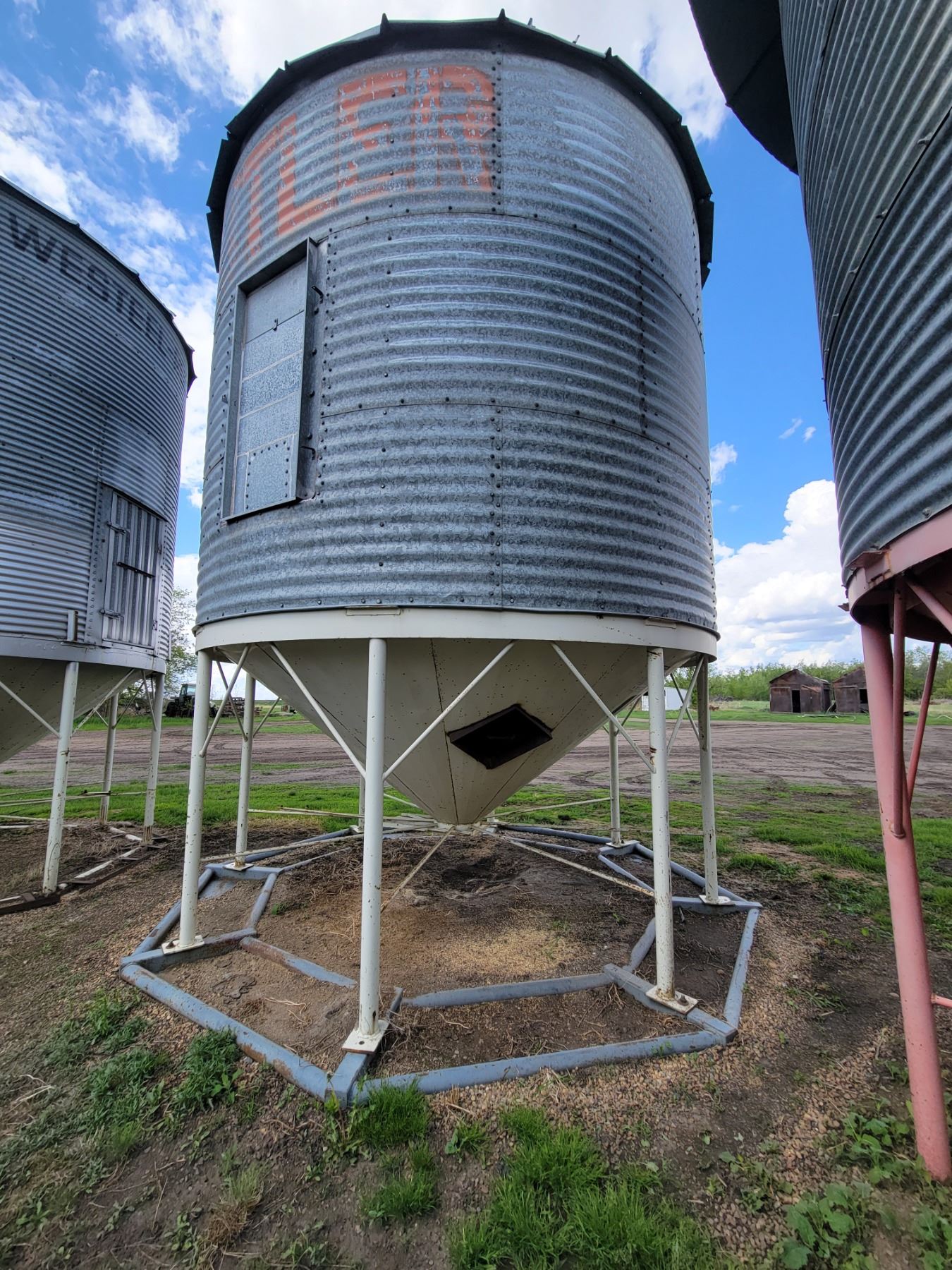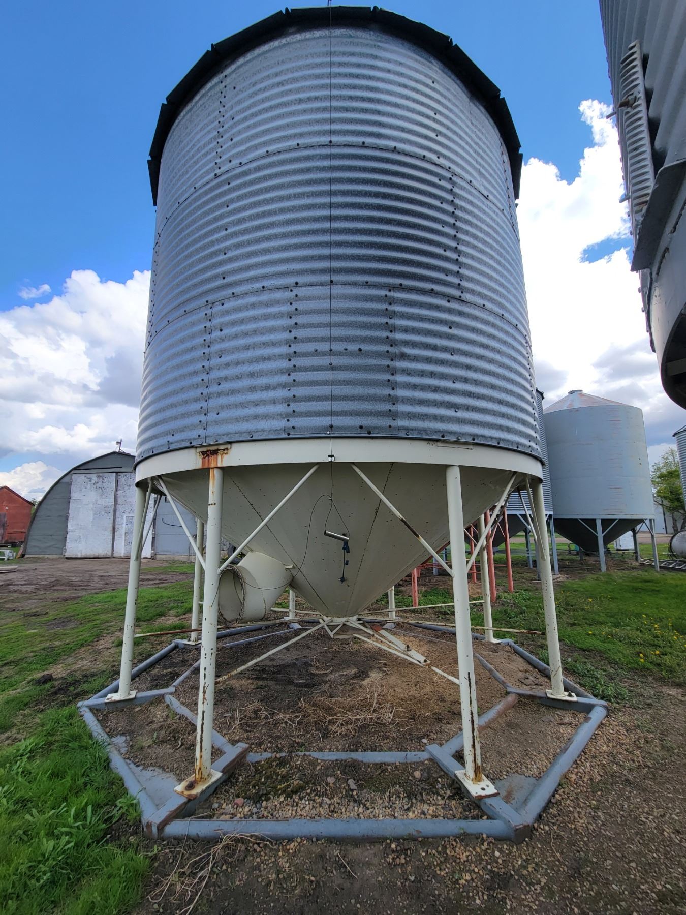 (Lot #'s 205 & 206 are a Group Lot) Butler Hopper Bin 14' dia. x 3-ring, approx. 1500 Bu, double skid, temp. cable, aeration ducts, remote lid. To Be Moved by December 31st, 2025. Located: 21121 31 St, NE, Edmonton. PH: Todd (780) 499-5060