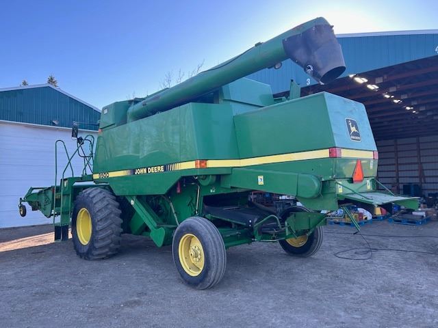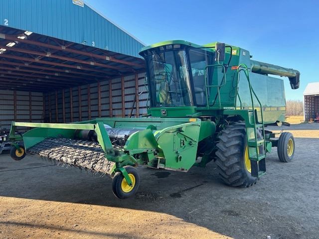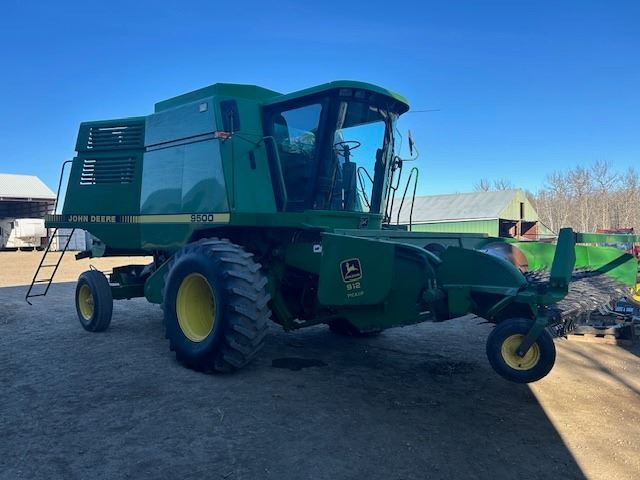 (Lot #s 271 & 272 are a Group Lot) JD 9500 combine S/N H09500X638897, chopper, 3220 threshing hours, shedded, c/w JD 912 pickup header S/N H009128635544. This combine took the crop off for the 2024 season, 450 acres with out any issues.