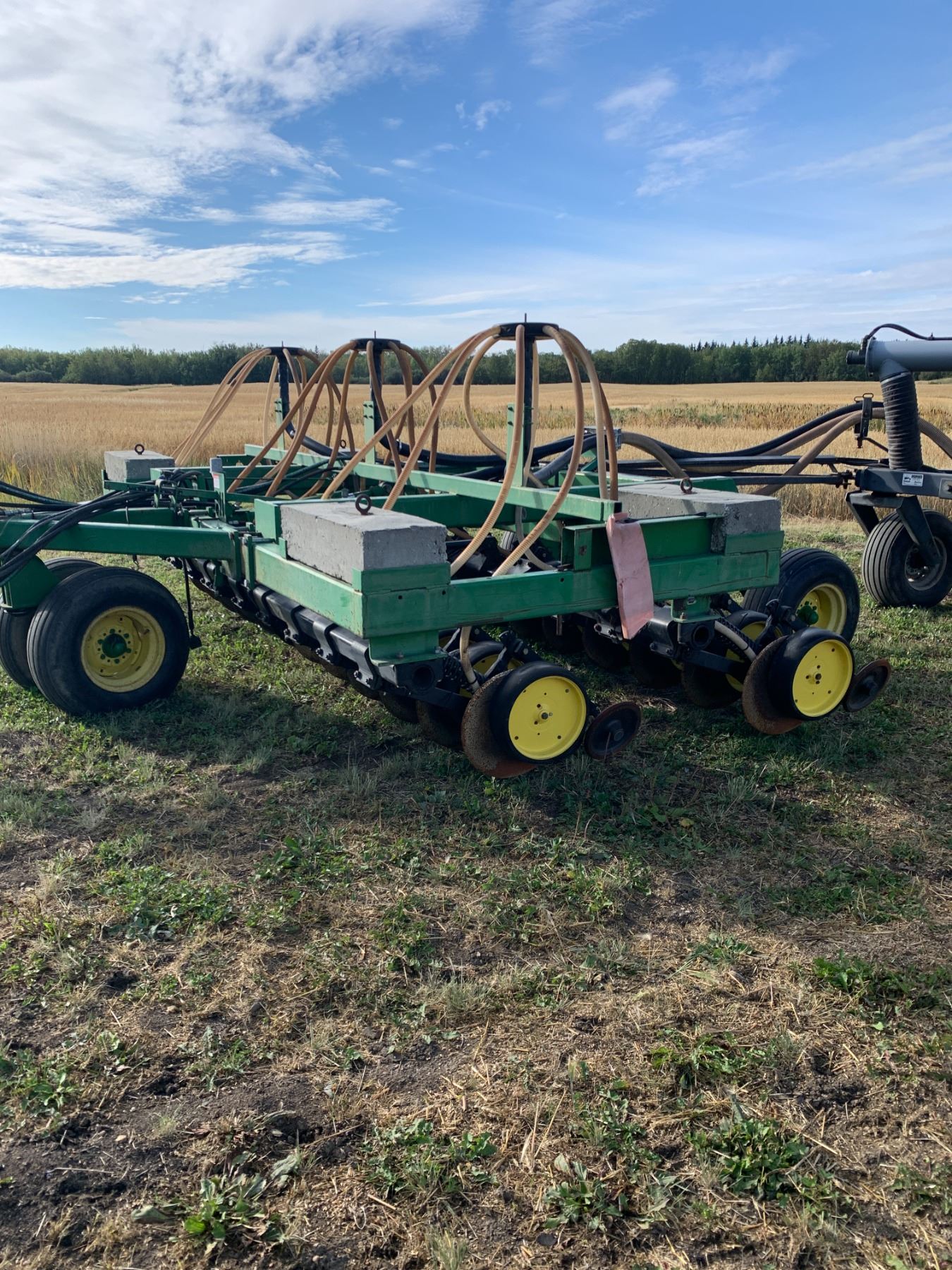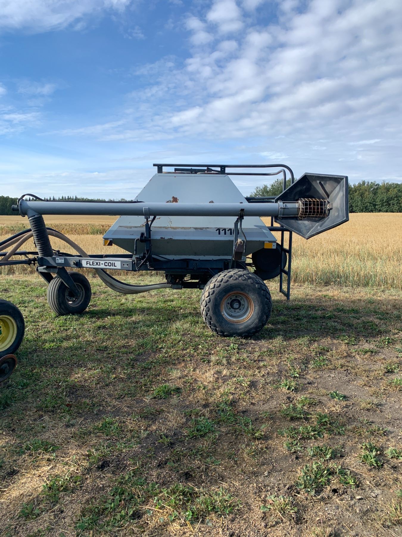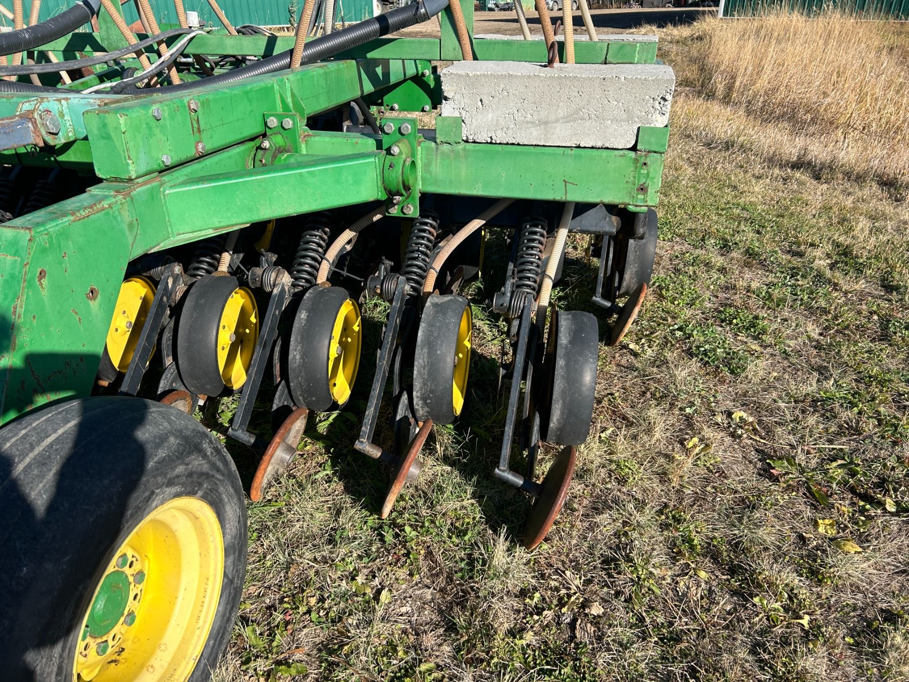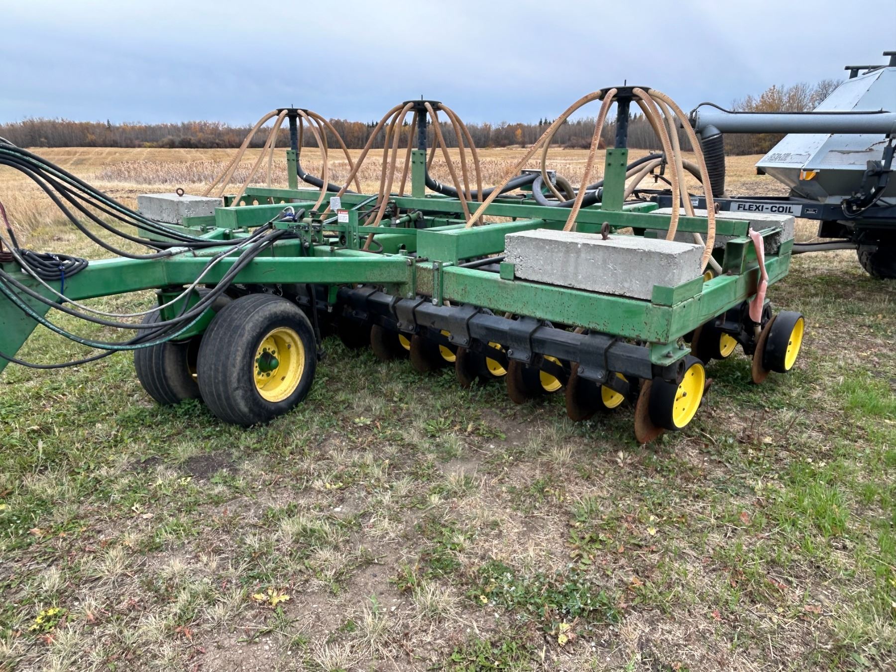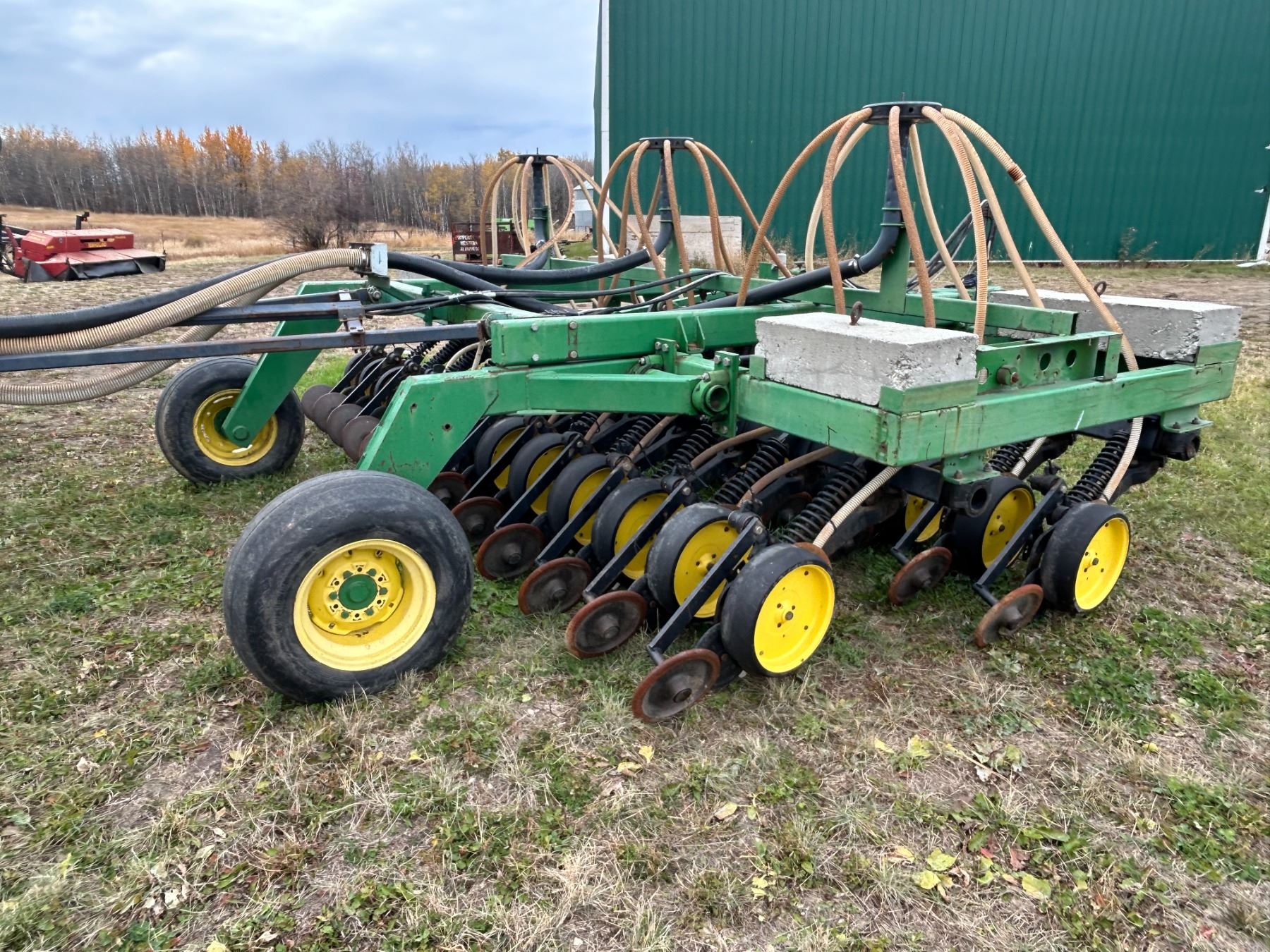 (Lot #s 278 & 279 are a Group Lot) HARD TO FIND. JD 750 15 ft No-Till single disc drill, newer bearings and packer wheels, 60/40 split, was mated to a Flexicoil 1110 tow behind drill, S/N N00750X004091. BUY THE CART & YOU'LL BE READY TO GO!