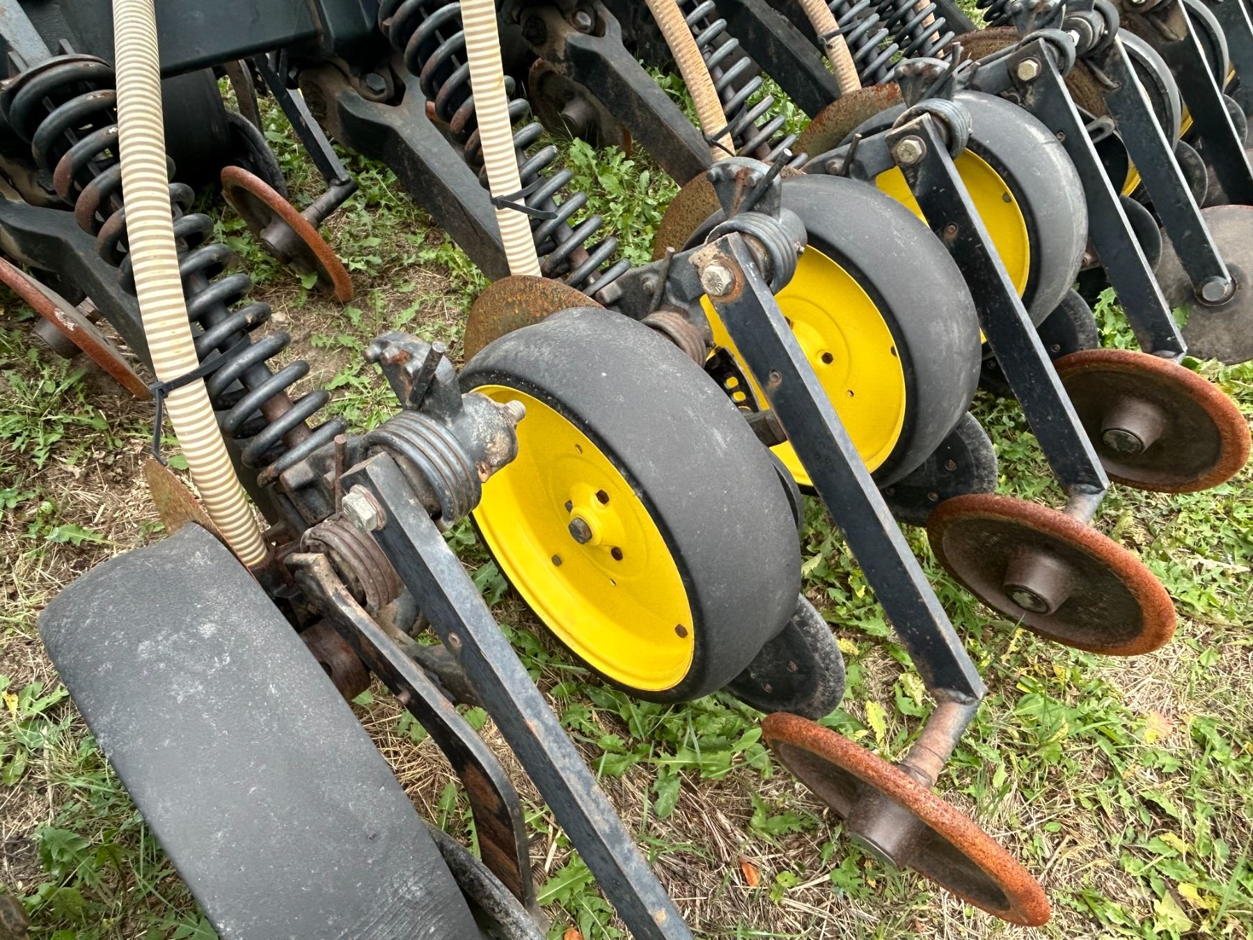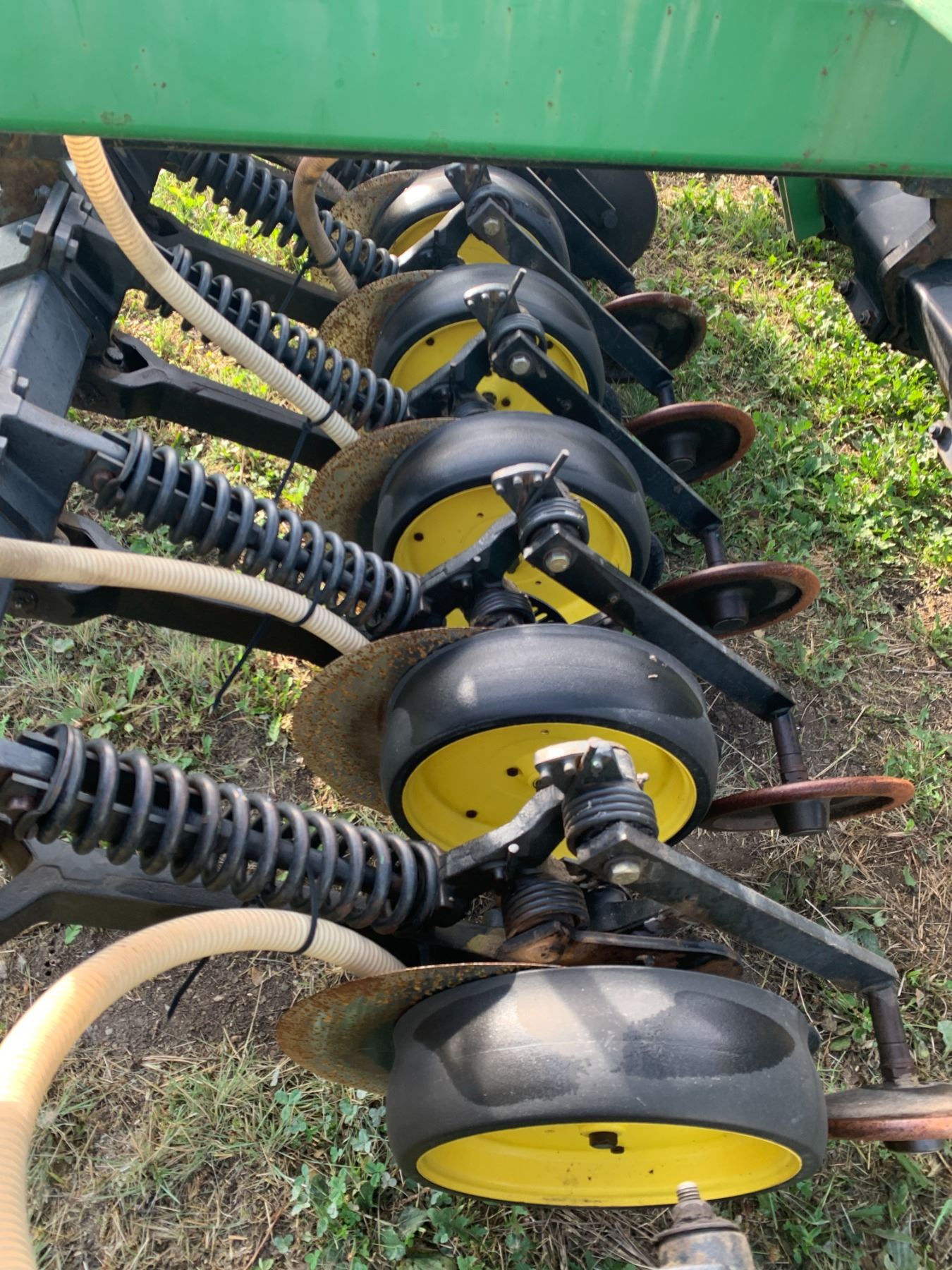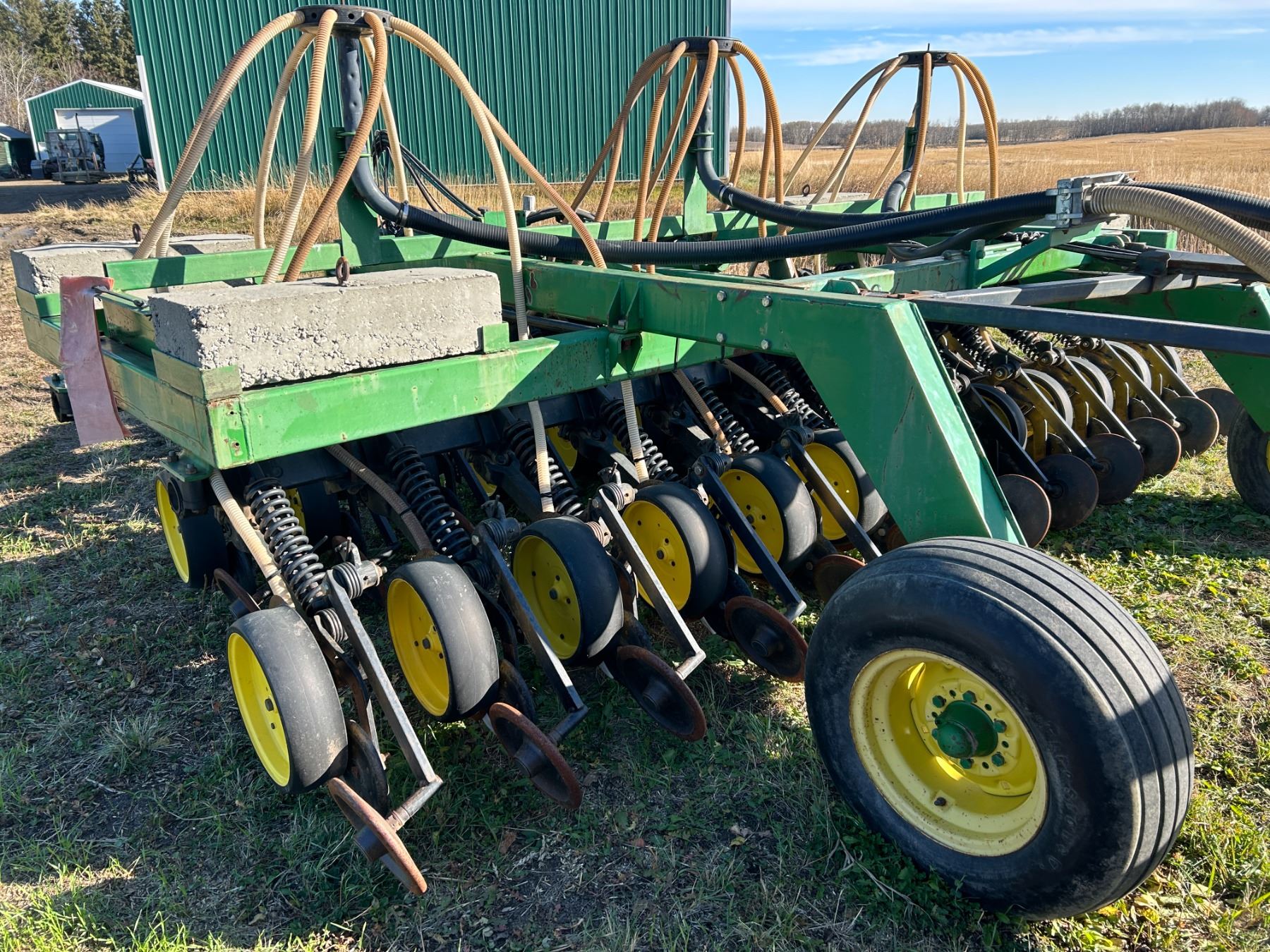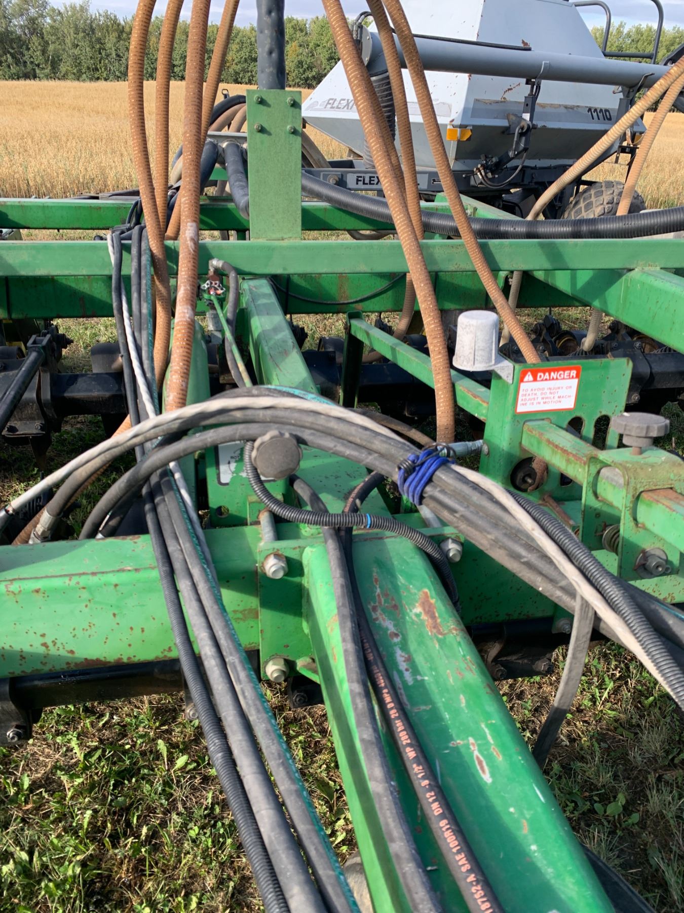 (Lot #s 278 & 279 are a Group Lot) HARD TO FIND. JD 750 15 ft No-Till single disc drill, newer bearings and packer wheels, 60/40 split, was mated to a Flexicoil 1110 tow behind drill, S/N N00750X004091. BUY THE CART & YOU'LL BE READY TO GO!
