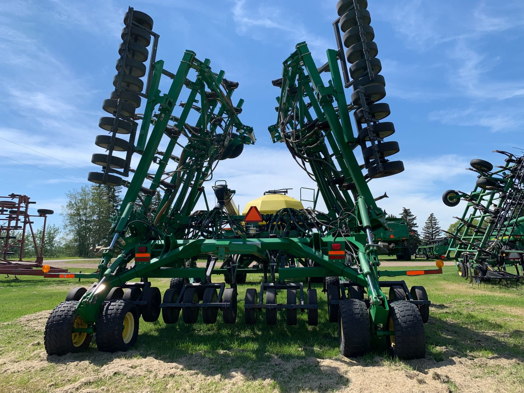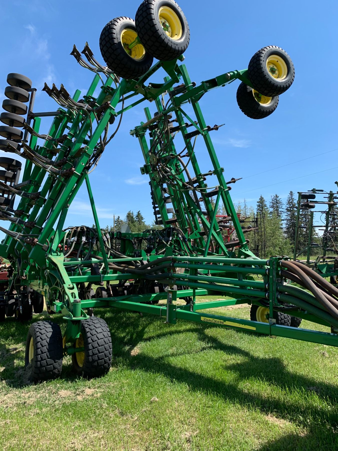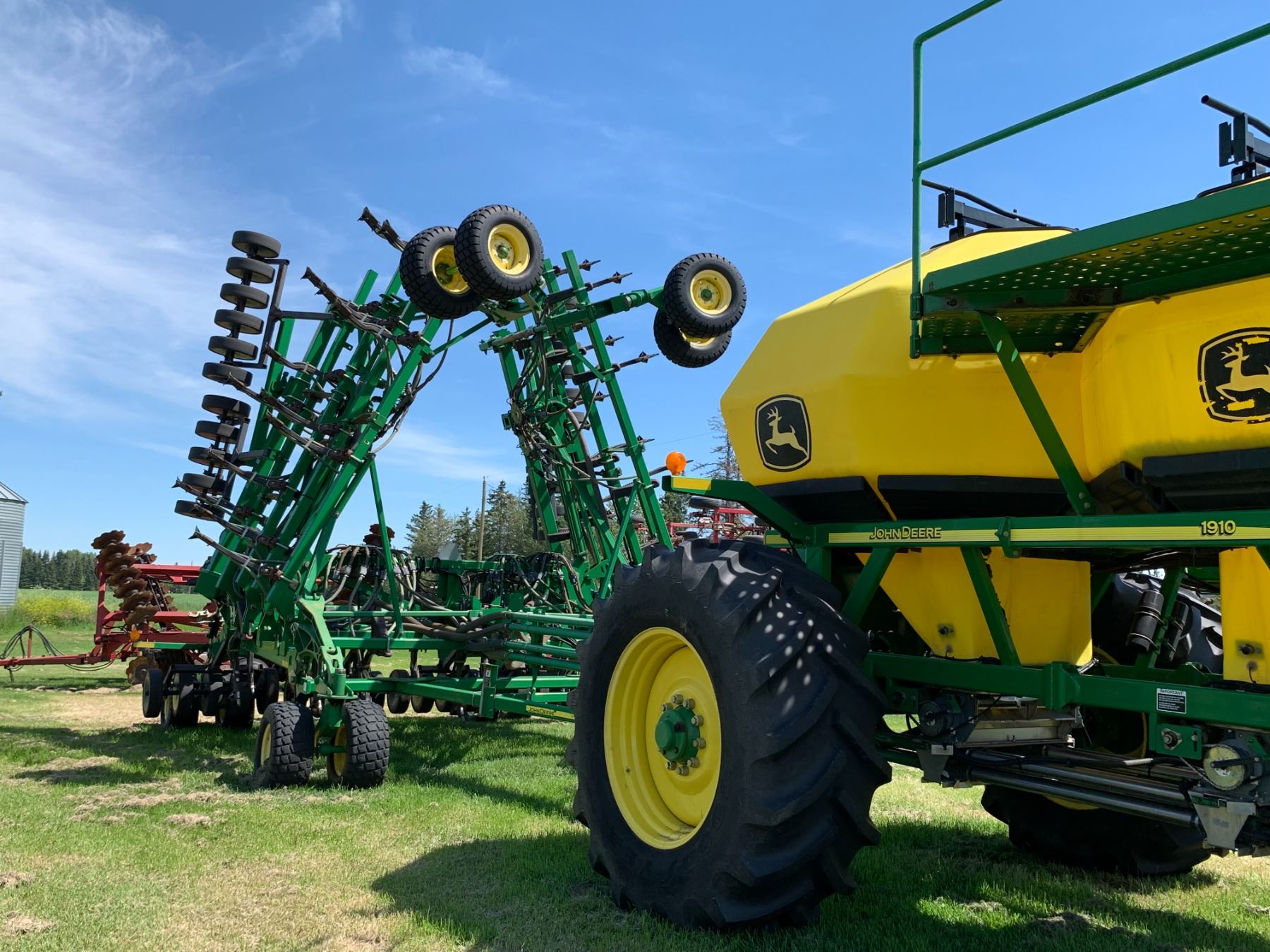 (Lot #'s 46, 47 & 48 are a Group Lot) JD 1830, 40' double shoot air seeder, 12" spacing, 5" packers, SN. A01830X730414 c/w JD 1910 Tow Between Air Cart, double comp., hyd. drive, SN. A0190T730579, stainless conveyor, stainless piping, stainless measure boxes & 3- extra rollers