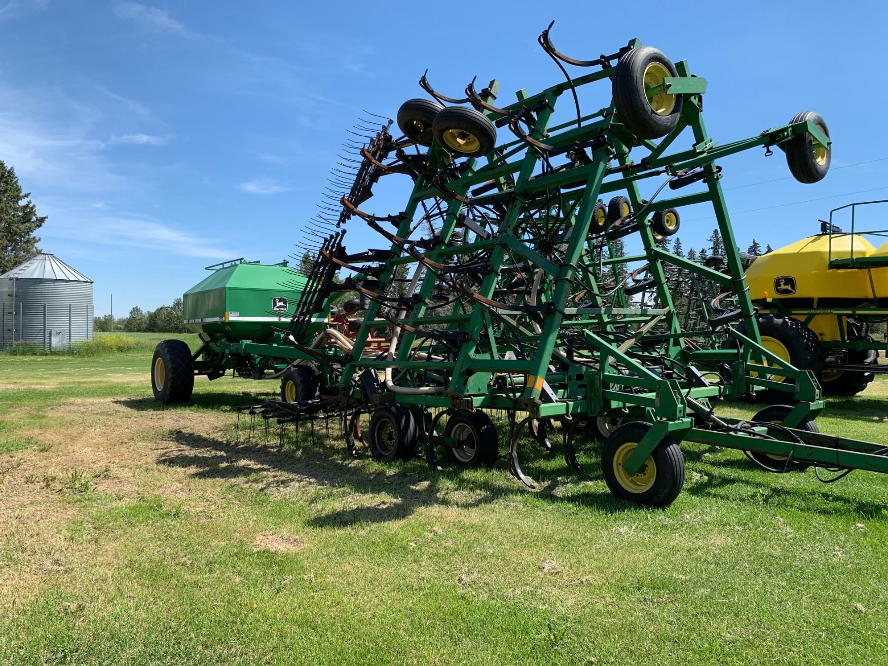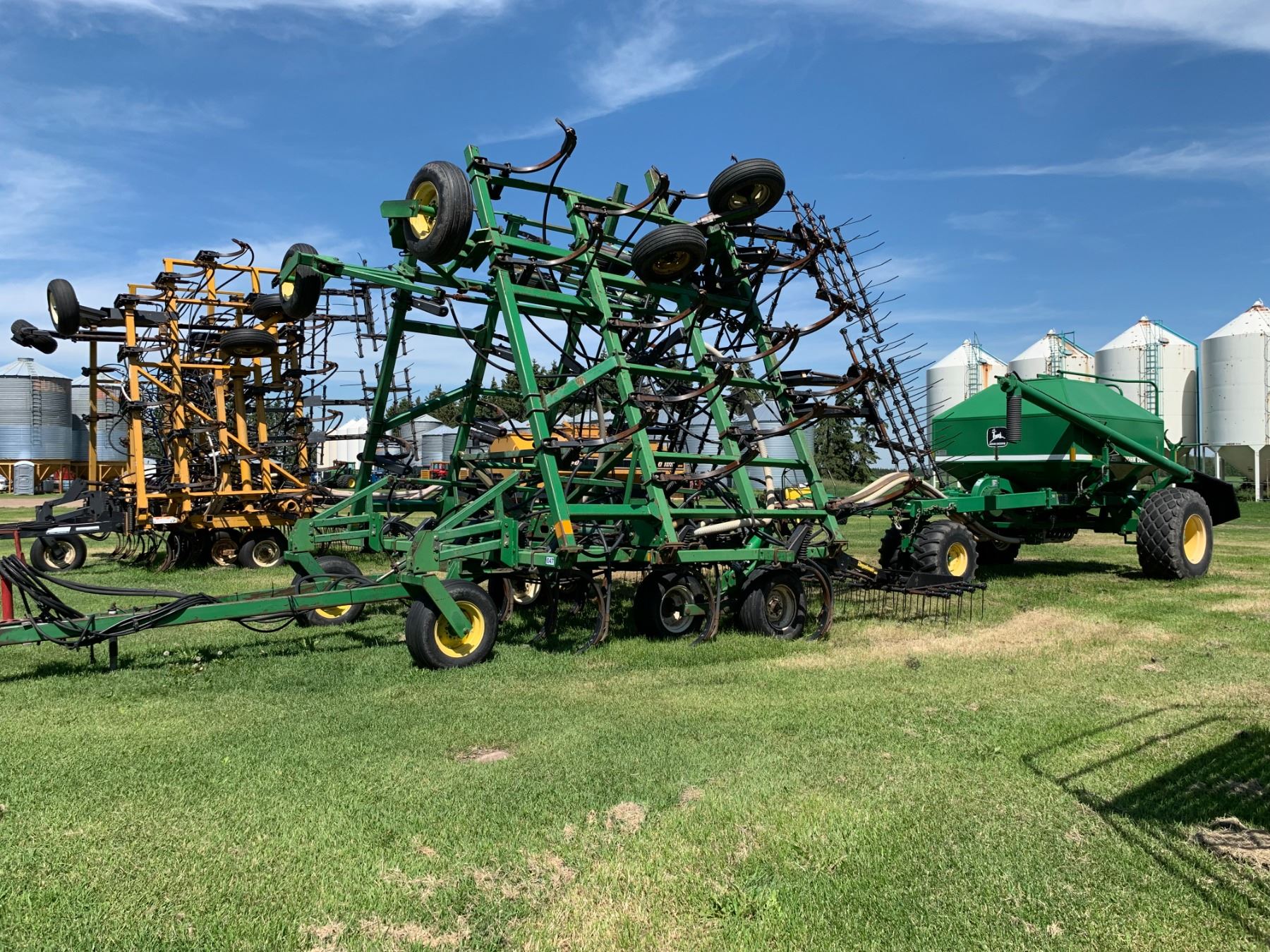 (Lot #'s 46, 47 & 48 are a Group Lot) JD 610 40' AIR SEEDER, 10" spacing, c/w JD 787 2-comp. air tank, Degelman 4 bar tines, new spikes, single shoot, romafa stainless manifold & meter box (replaced in 2023) SN. H00787X670711