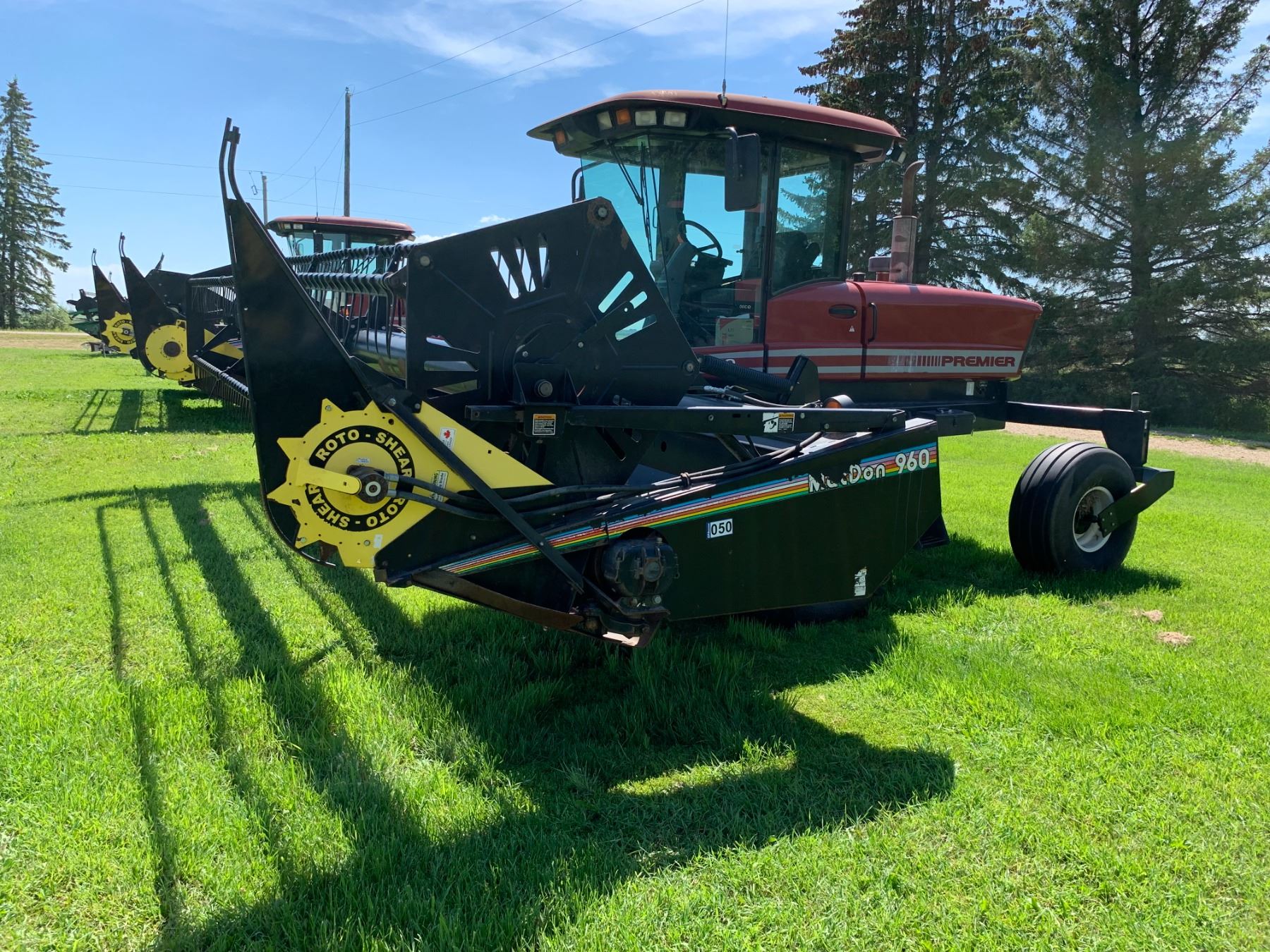 (Lot #'s 49 & 50 are a Group Lot) 2002 MACDON/PREMIER 2940 SWATHER, SN. 144898, 94030 (header), Model# 2940, 960, shedded, 21 foot, Hart Carter Reel, Roto Shears, 16.5-16 Rear, Upgraded wobble box. PH Bob McEwen at (780) 264-0821 OR Dean (780) 264-0752