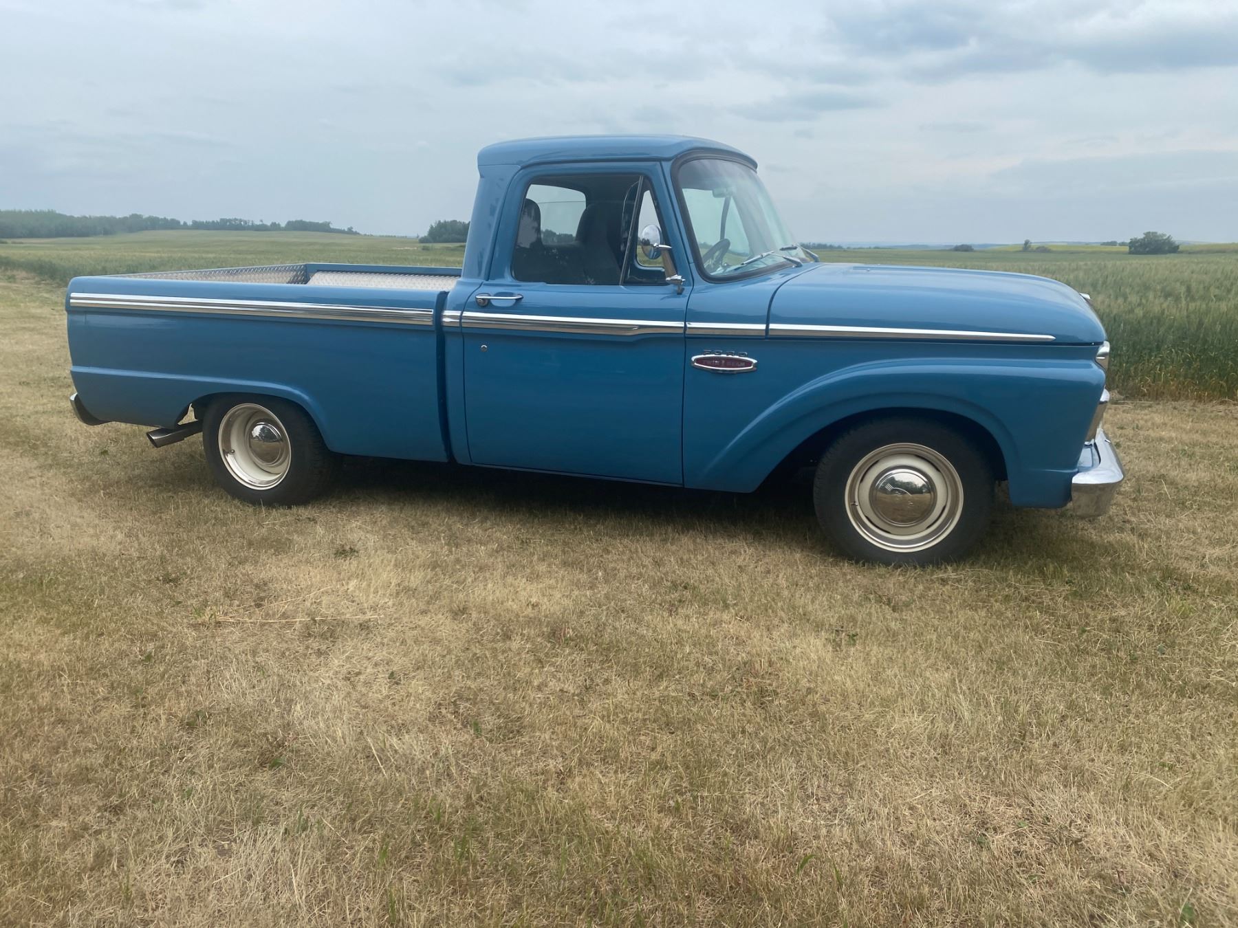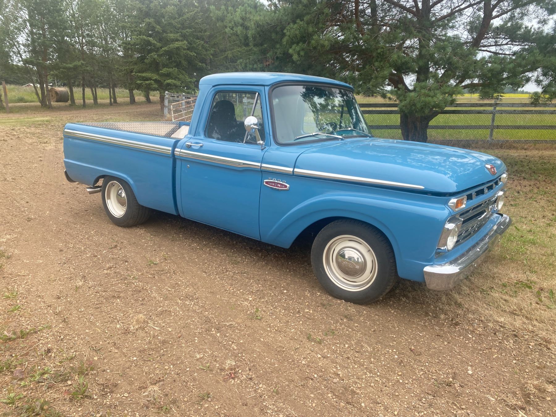 (Lot #'s 96, 97, 98 & 99 are a Group Lot) 1966 Ford 100 Twin I BEAM short box pickup,302 V8 fuel injection,3 spd auto. FRAME UP RESTORATION, checker plate inside box liner dual exhaust, rear hitch, Serial F10YR816801, Sask registered, Minimum opening bid $24,000 and selling subject to owners’ approval Everything works, runs and rides very nice