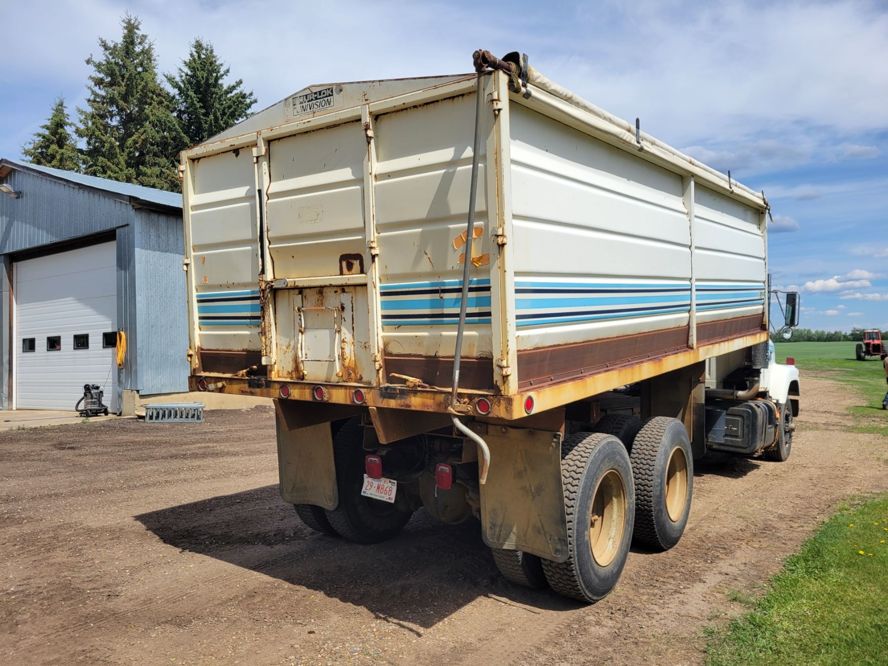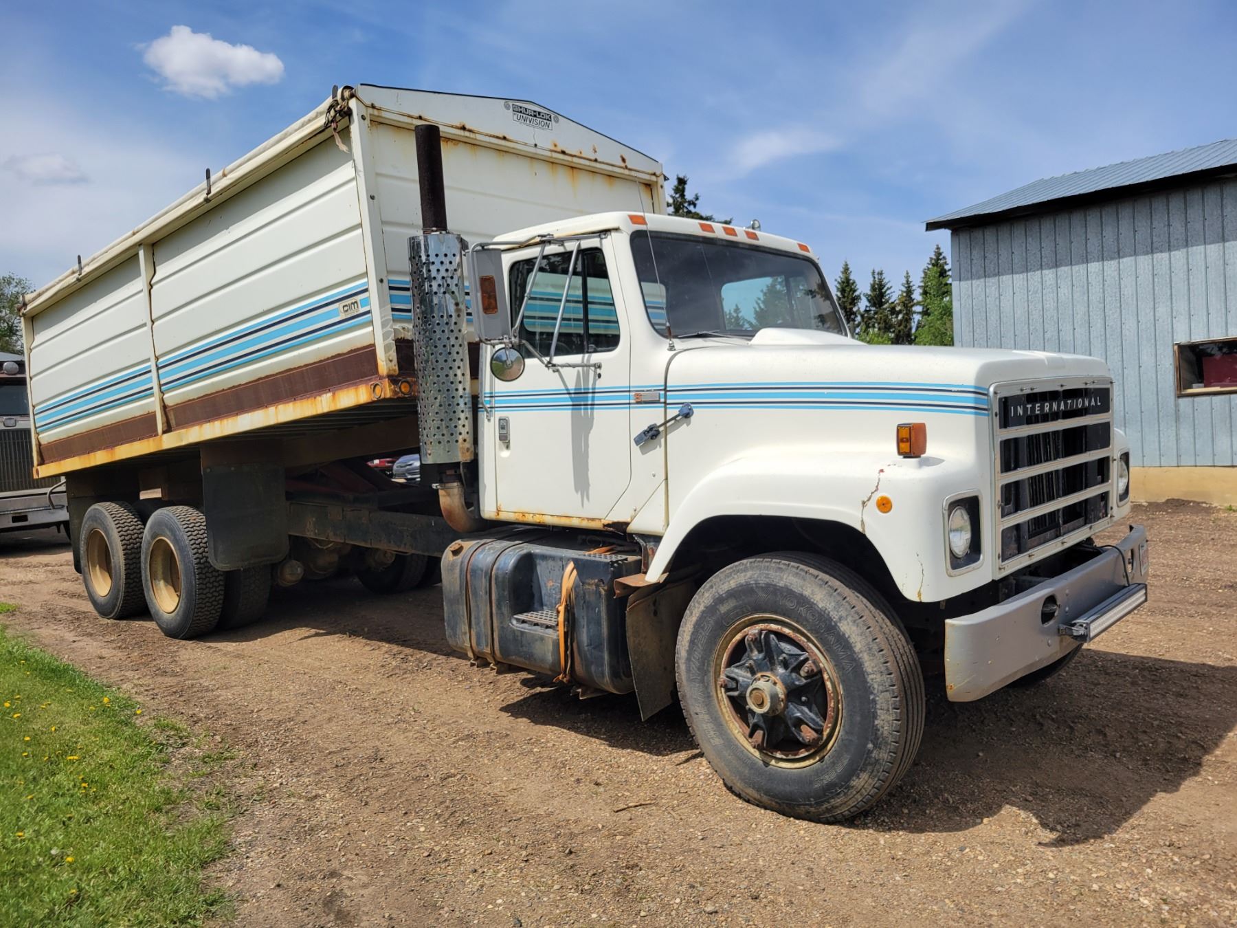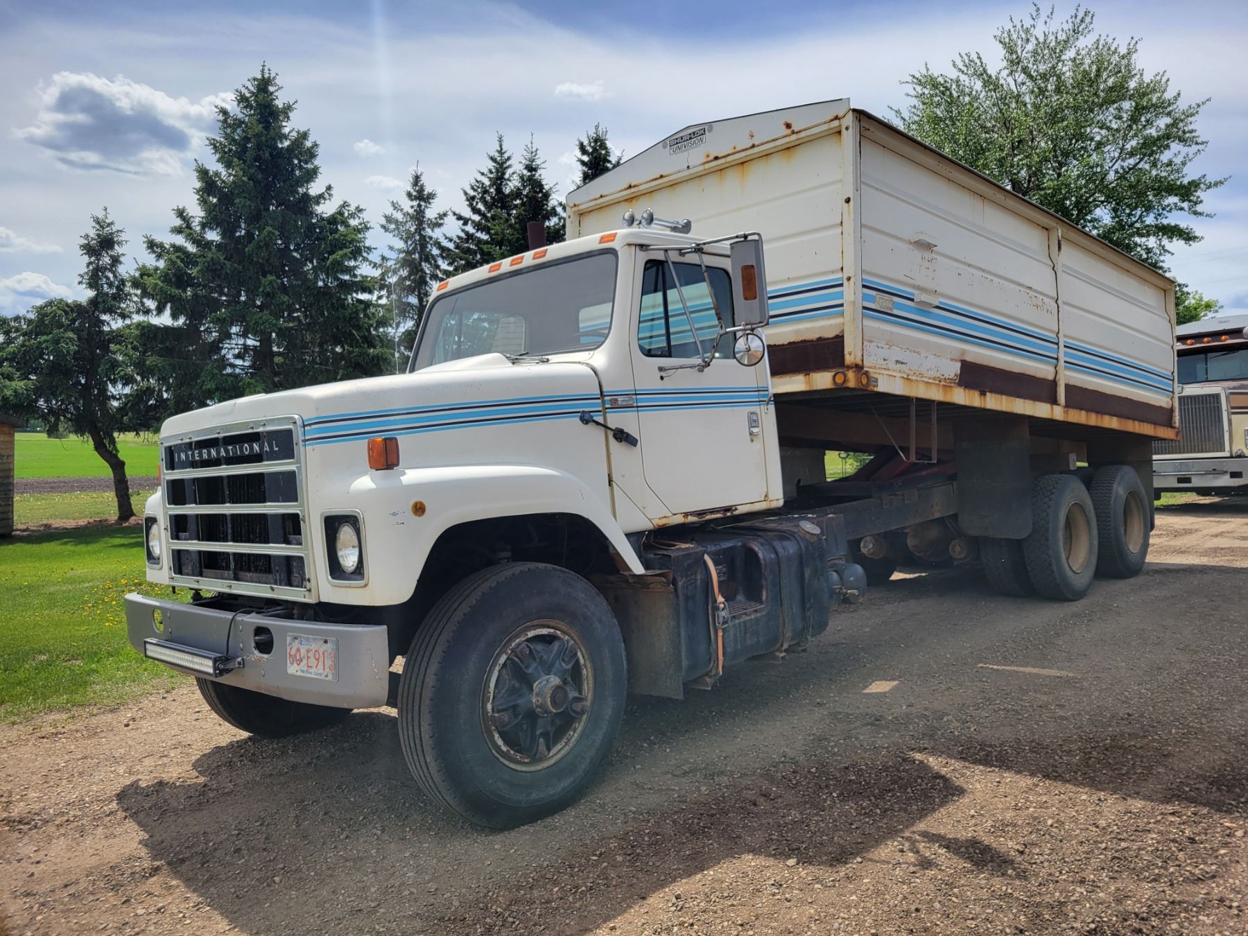 (Lots 1, 2, & 3 are a Group Lot) 1978 I.H. Tandem Grain Truck, 466 Diesel, 10 spd 20'x60" Steel Box & Twin Cyl. Hoist Roll Tarp 11Rx22.5's #DF257HHA27252