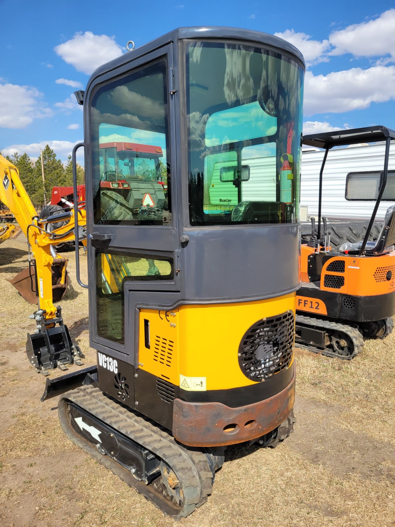 (Lots 58 & 59 are a Group Lot) 2023 VICSEC VC13C Mini Excavator, Yellow/Black, Enclosed Cab, 13.5HP Brigs & Stratton Engine, 2023 US EPA Label, Hydraulic Drive, 2' 8" Stick, Auxiliary Hydraulic Plumbing, Backfill blade, 7" Rubber Tracks, 16" Digging Bucket, Manual Thumb. SN. VC13C51