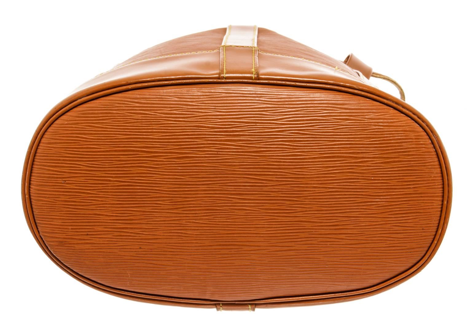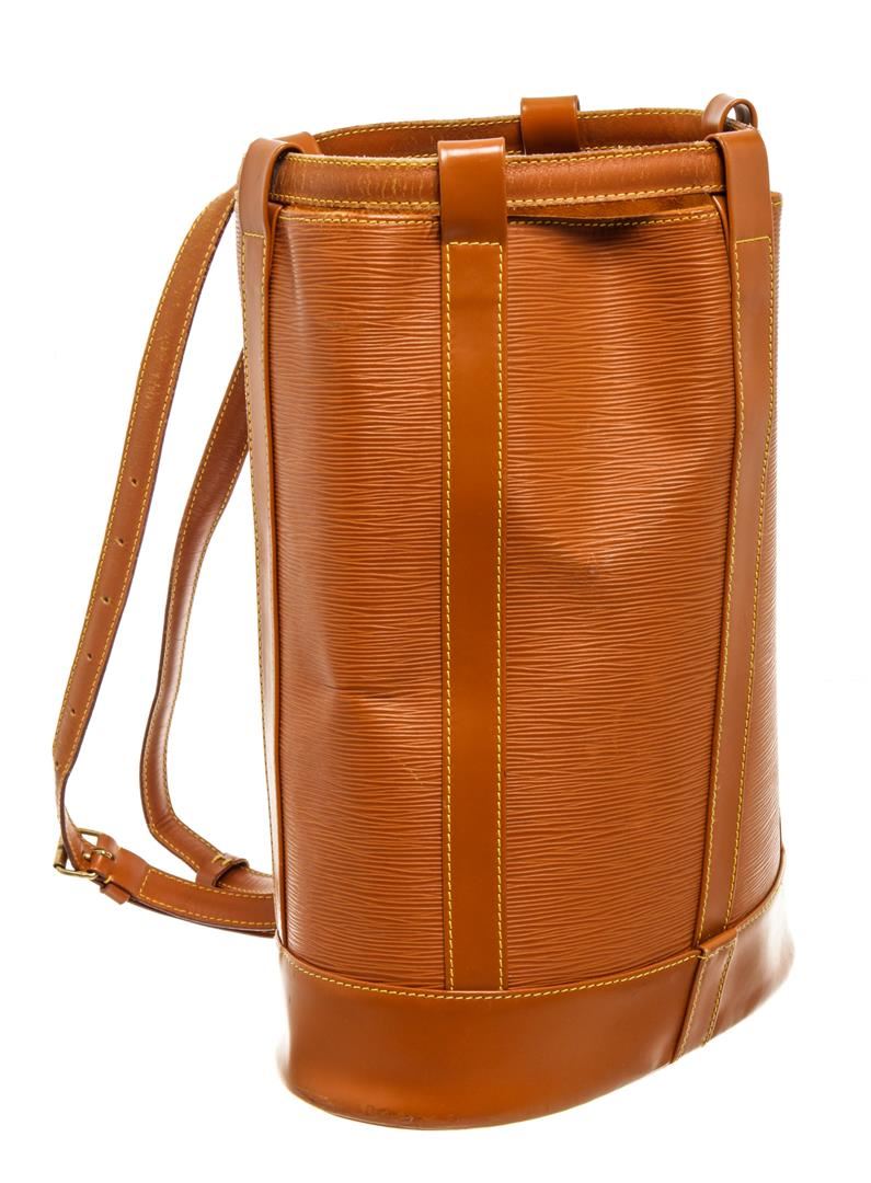 One Louis Vuitton Brown Epi Leather Randonnee PM Shoulder Bag. Item is sold AS-IS. All available information is listed in the description and shown in the photo. Louis Vuitton Brown Epi Leather Randonnee PM Shoulder Bag with suede lining, shoulder strap and gold tone hardware.