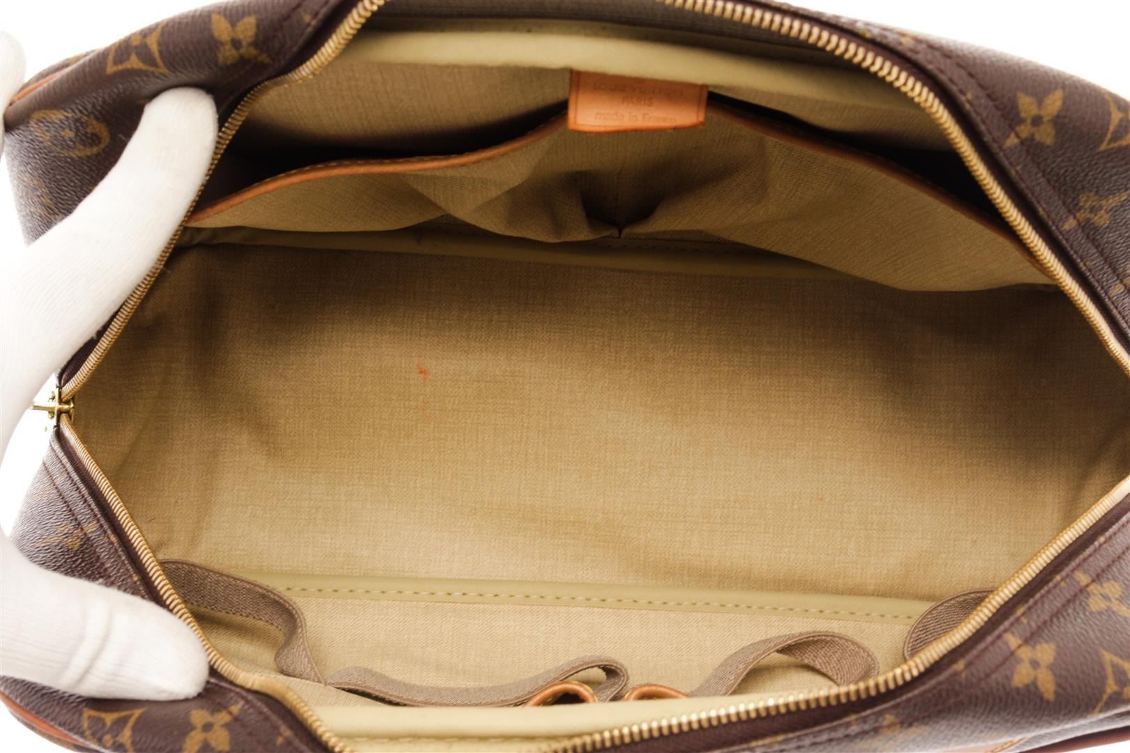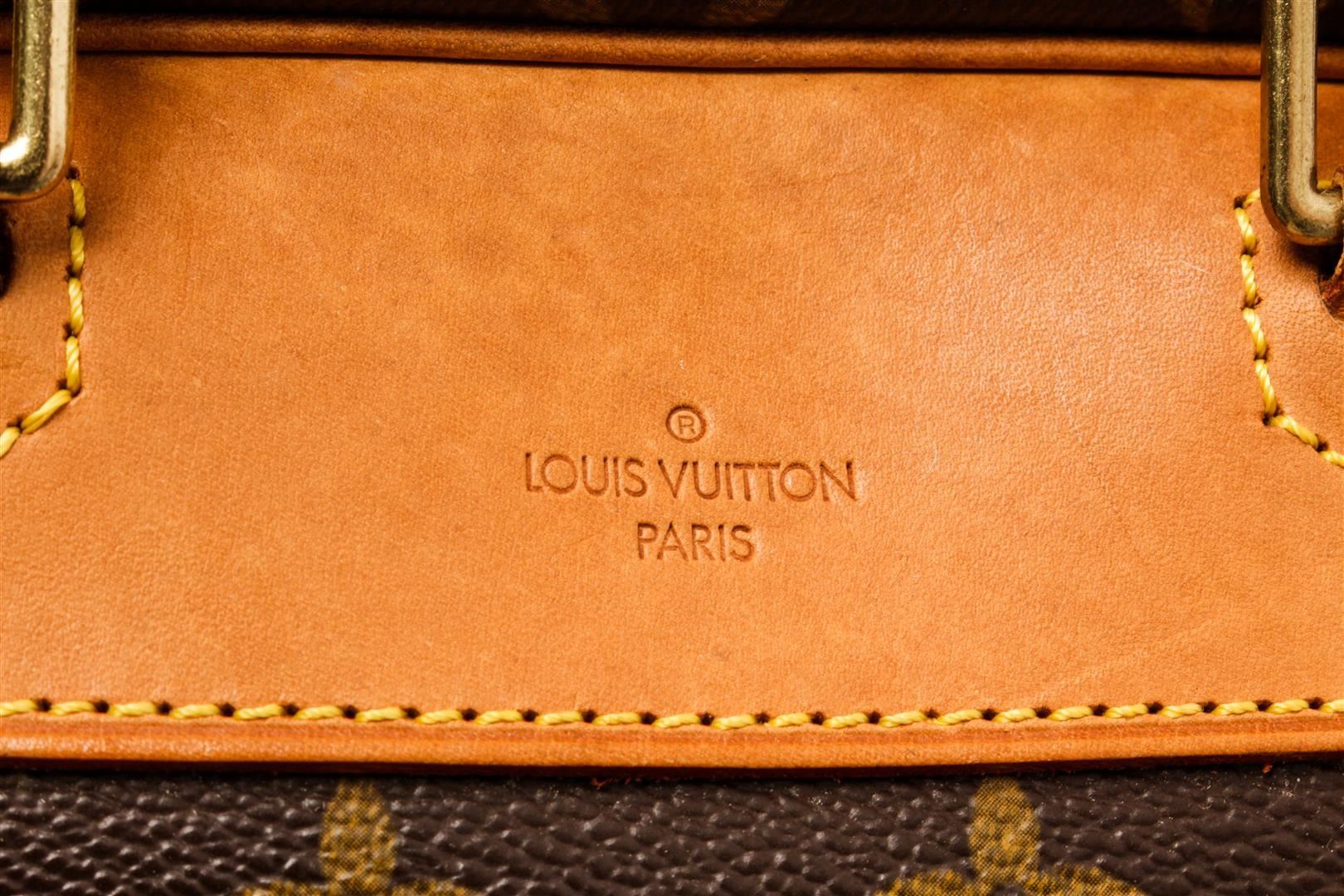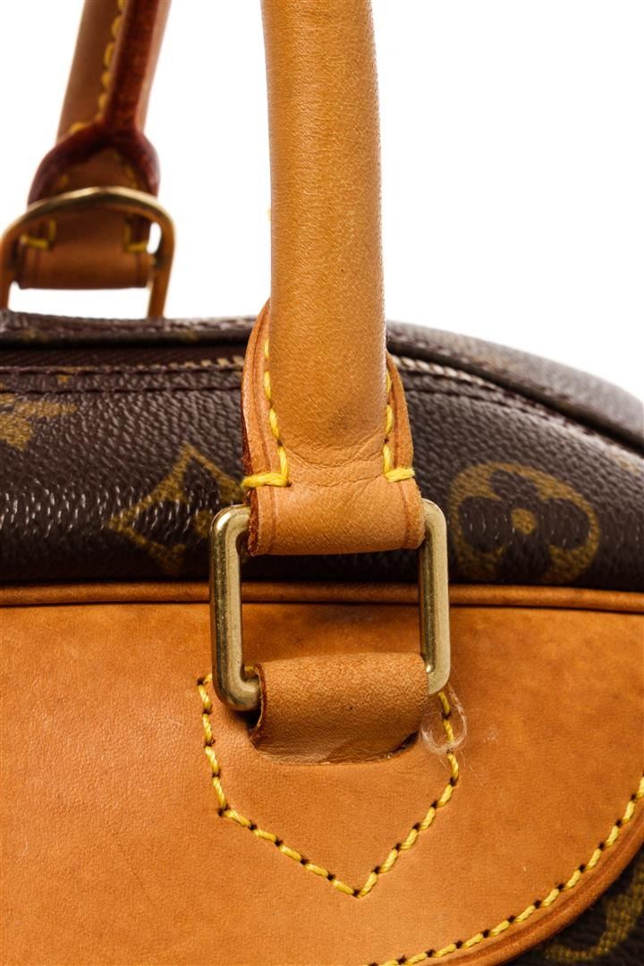Louis Vuitton Brown Monogram Canvas Deauville Satchel Bag. All available information is listed in the description and shown in the photos. Louis Vuitton Brown Monogram Canvas Deauville Satchel Bag with gold-tone hardware, monogram canvas, leather tag, debossed logo, two-way zip fastening, two rounded top handles, front patch pocket, internal patch pockets, internal logo patch. Depth 5.9 in, Handle 4.3 in, Height 11.4 in, Width 13.8 in / Depth 15 cm, Handle 11 cm, Height 29 cm, Width 35 cm