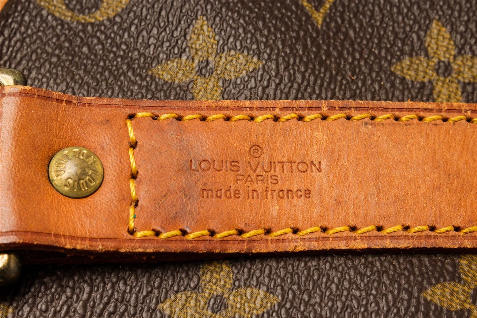 Louis Vuitton Brown Monogram Canvas Keepall Bandouliere 50 Travel Bag. All available information is listed in the description and shown in the photos. Louis Vuitton Brown Monogram Canvas Keepall Bandouliere 50 Travel Bag with a monogram canvas body, rolled leather handles, a detachable shoulder strap, and a top zip closure. 10.8" L x 19.5" W x 8.3" D / 27.43 x 49.53 x 21.08 CM