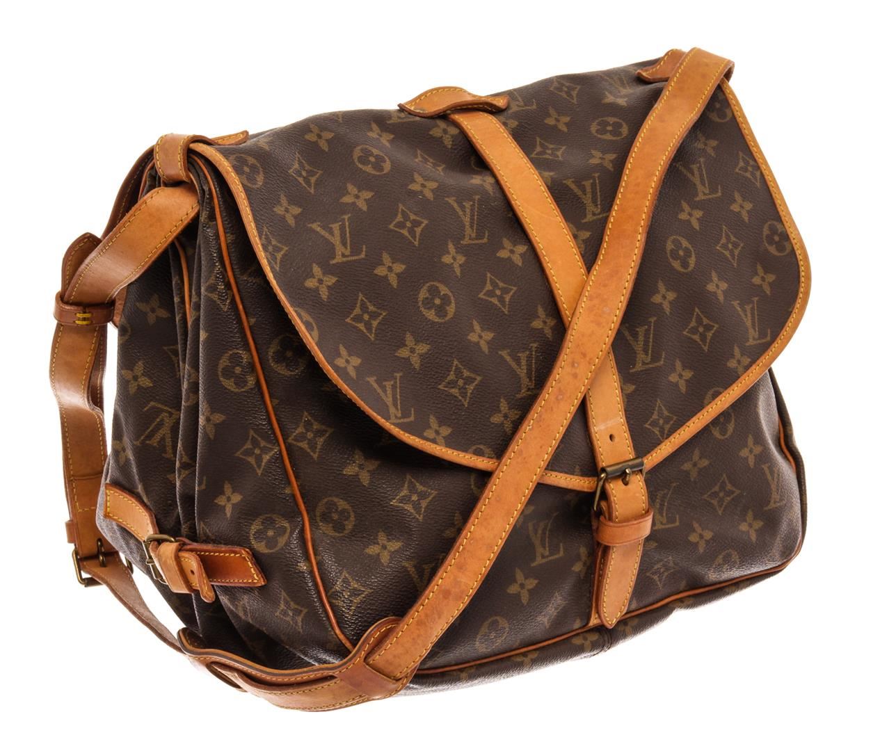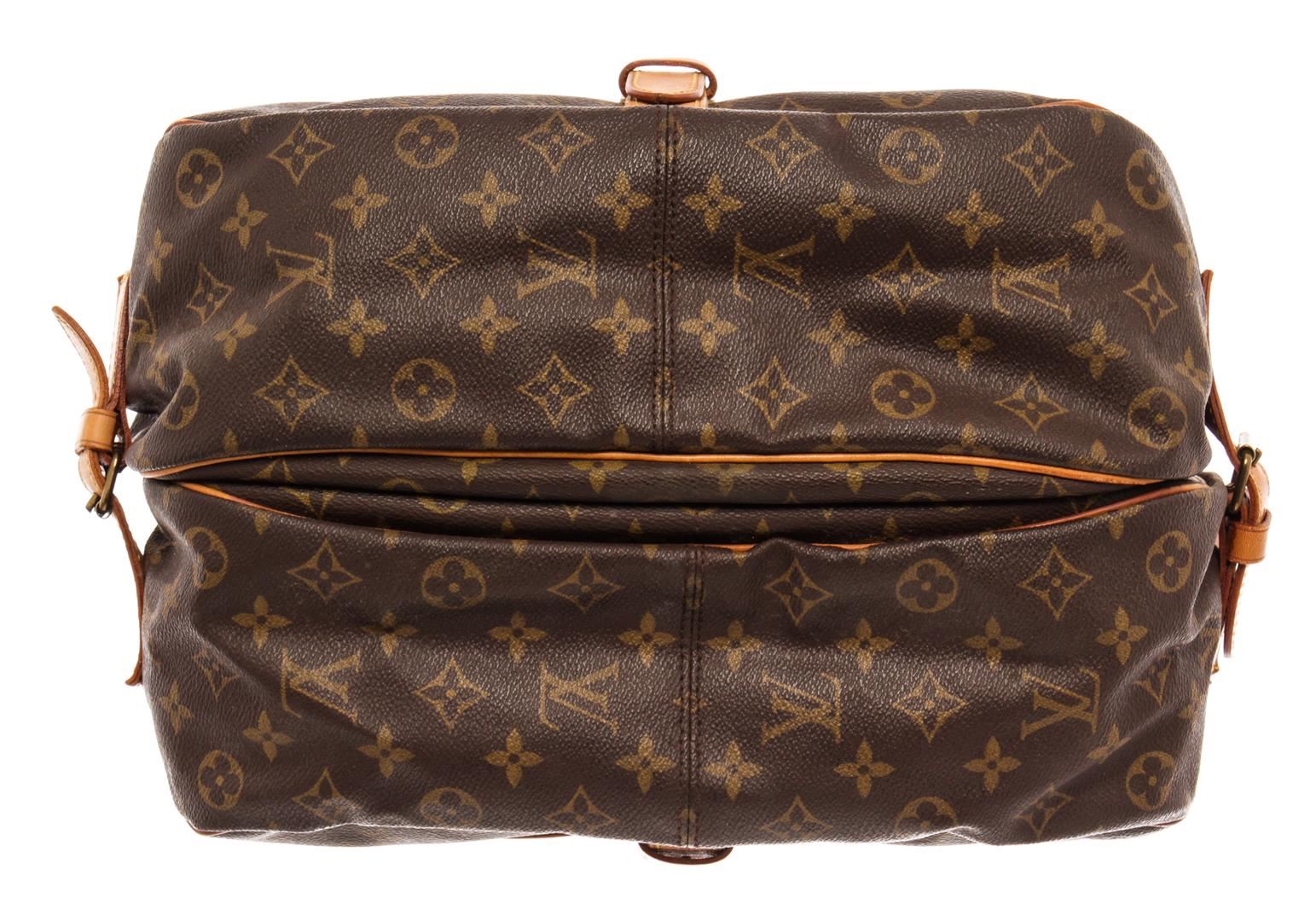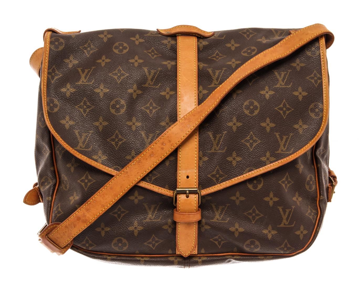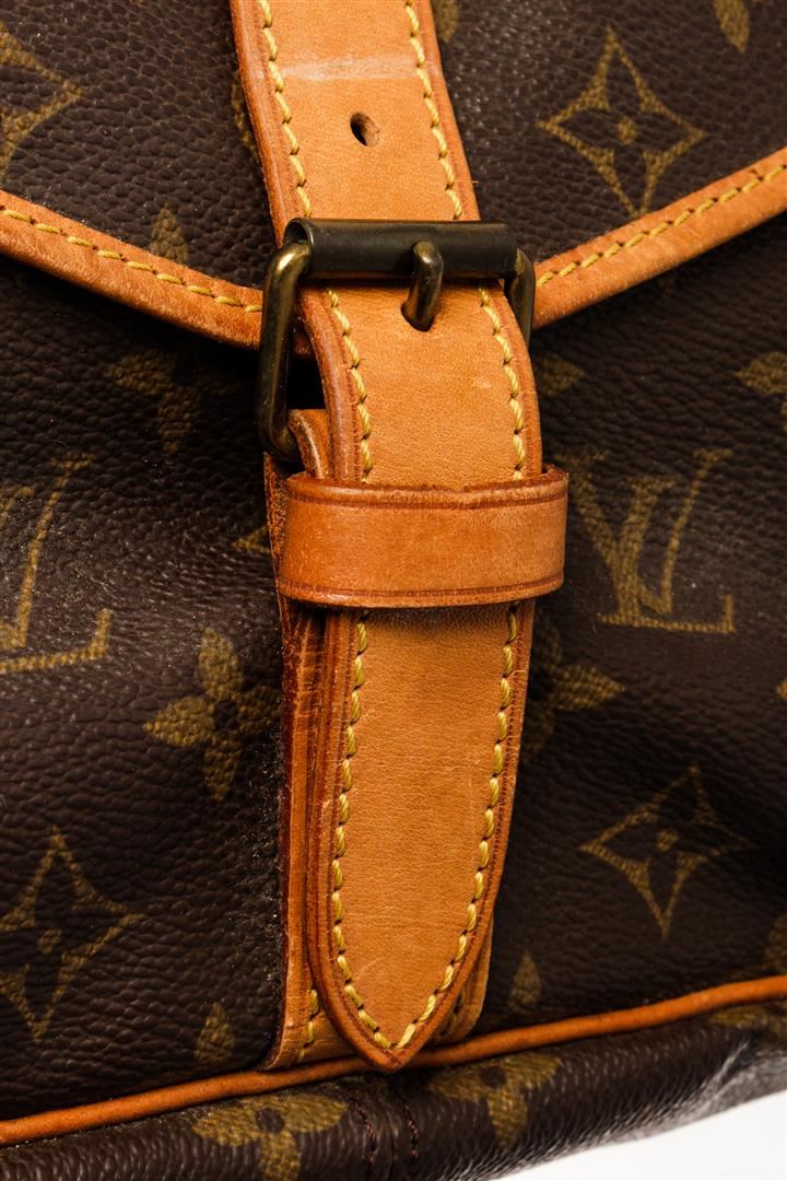 Louis Vuitton Brown Monogram Canvas Saumur 35 Messenger Bag. All available information is listed in the description and shown in the photos. Louis Vuitton Brown Monogram Canvas Saumur 35 Messenger Bag with monogram pattern, brown coated canvas, brass hardware, leather trim, single adjustable shoulder strap, leather trim embellishment, canvas lining & three interior pockets, buckle closures at front & back. Height: 12" Width: 12.5" Depth: 5.75", Shoulder Strap Drop: 16" / 30.48 x 31.75 x 14.60 Cm