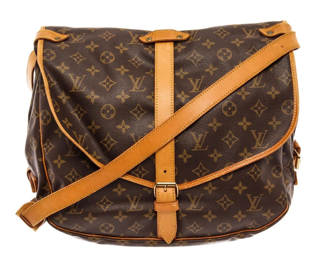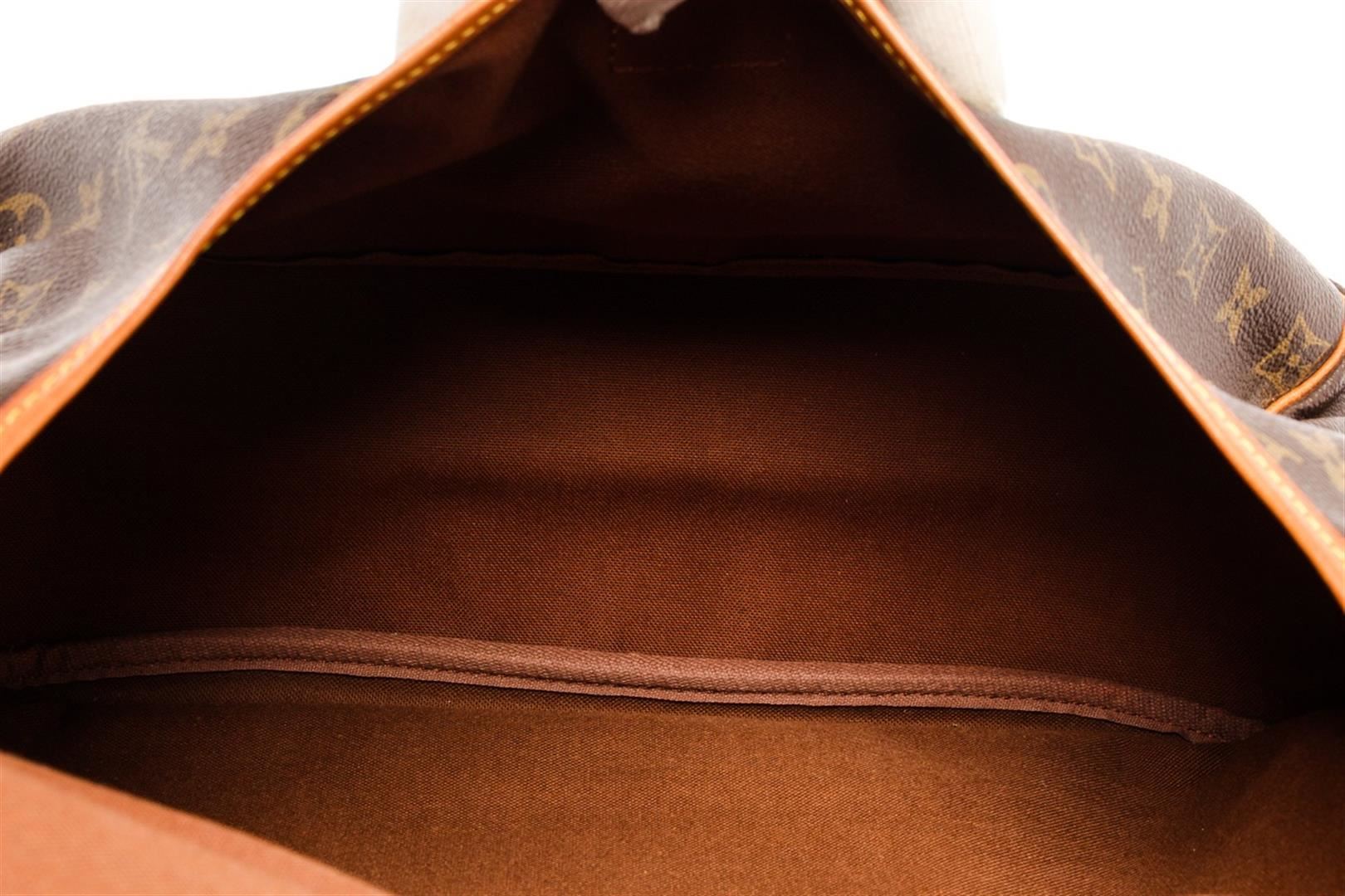 Louis Vuitton Brown Monogram Leather Saumur 35 Messenger Bag. All available information is listed in the description and shown in the photos. Louis Vuitton Brown Monogram Leather Saumur 35 Messenger Bag with brass hardware, leather trim, single adjustable shoulder strap, canvas lining & three interior pockets, buckle closure at front. Height: 10" Width: 11.5" Depth: 2", Shoulder Strap Drop: 18.5-23" / 25.4 x 29.21 x 5.08 Cm