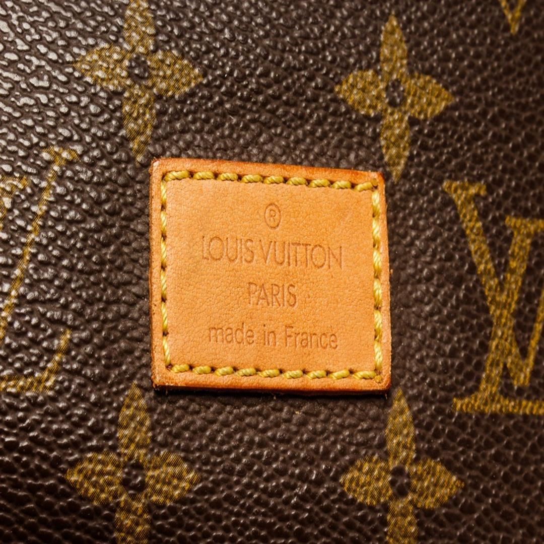 One Louis Vuitton Brown Monogram Saumur 35 Shoulder Bag. Item is sold AS-IS. All available information is listed in the description and shown in the photo. Louis Vuitton brown monogram Saumur 35 shoulder bag features a monogram canvas exterior, brown fabric lining, a contrasting vachetta leather strap, front flaps with belt buckle closures, dual interior compartments, and interior slip pockets. Vachetta is stained and cracking, Height: 10.6" Width: 9.4" Depth: 8.7", Handle Drop: / 26.92 x 23.87 x 22.09 Cm