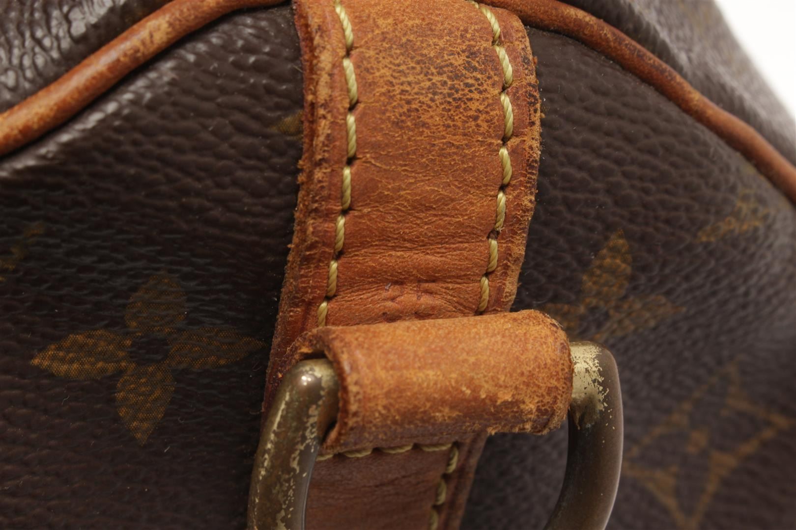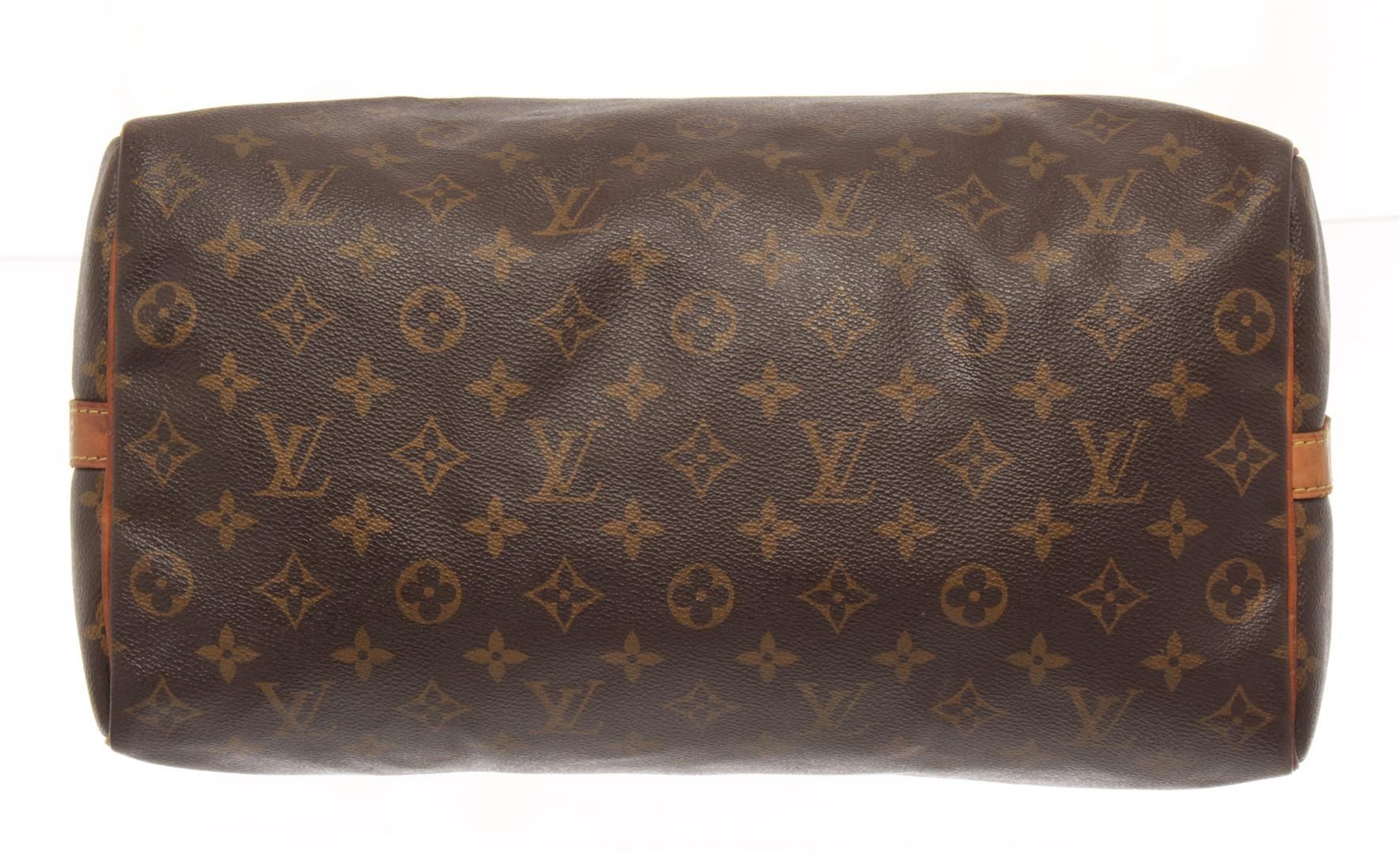 One Louis Vuitton Brown Monogram Speedy 35 Bandouliere. Item is sold AS-IS. All available information is listed in the description and shown in the photo. louis vuitton brown monogram canvas speedy 35 bandoulie satchel bag with gold-tone hardware, internal slip pocket, leather trim, two rolled top handles, main compartment top zip fastening. Depth 7.9 in, Handle 3.9 in, Height 9.1 in, Width 13.8 in / Depth 20 cm, Handle 10 cm, Height 23 cm, Width 35 cm