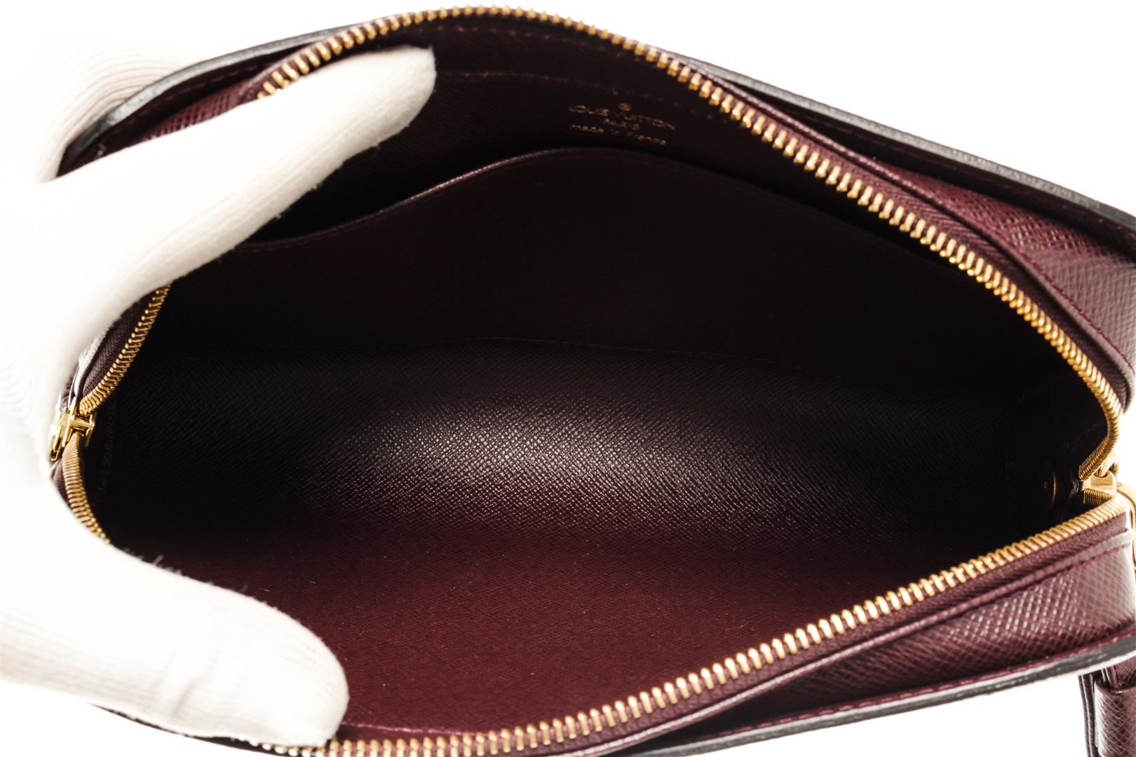 One Louis Vuitton Burgundy Taiga Leather Baikal Clutch. Item is sold AS-IS. All available information is listed in the description and shown in the photo. Louis Vuitton Red Leather Baikal Clutch with leather, gold-tone hardware, red leather trim, red taiga leather lining, three interior compartments pockets and a zipper closure.
