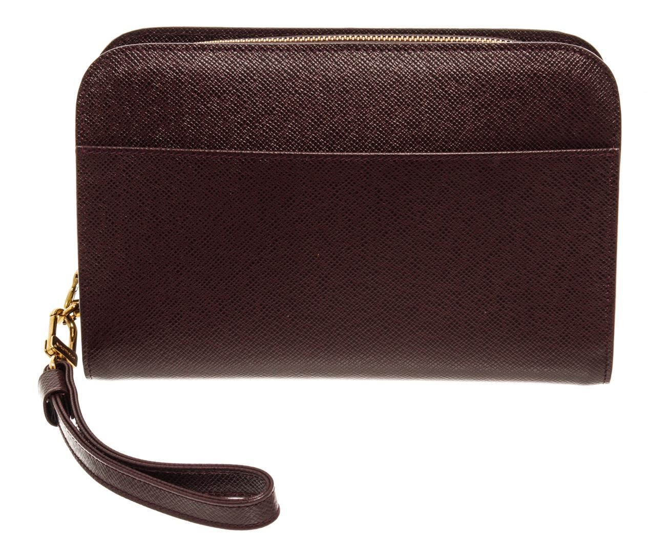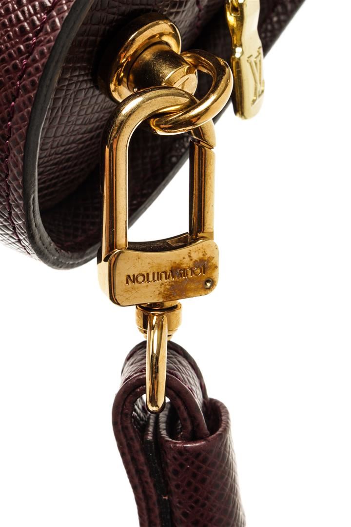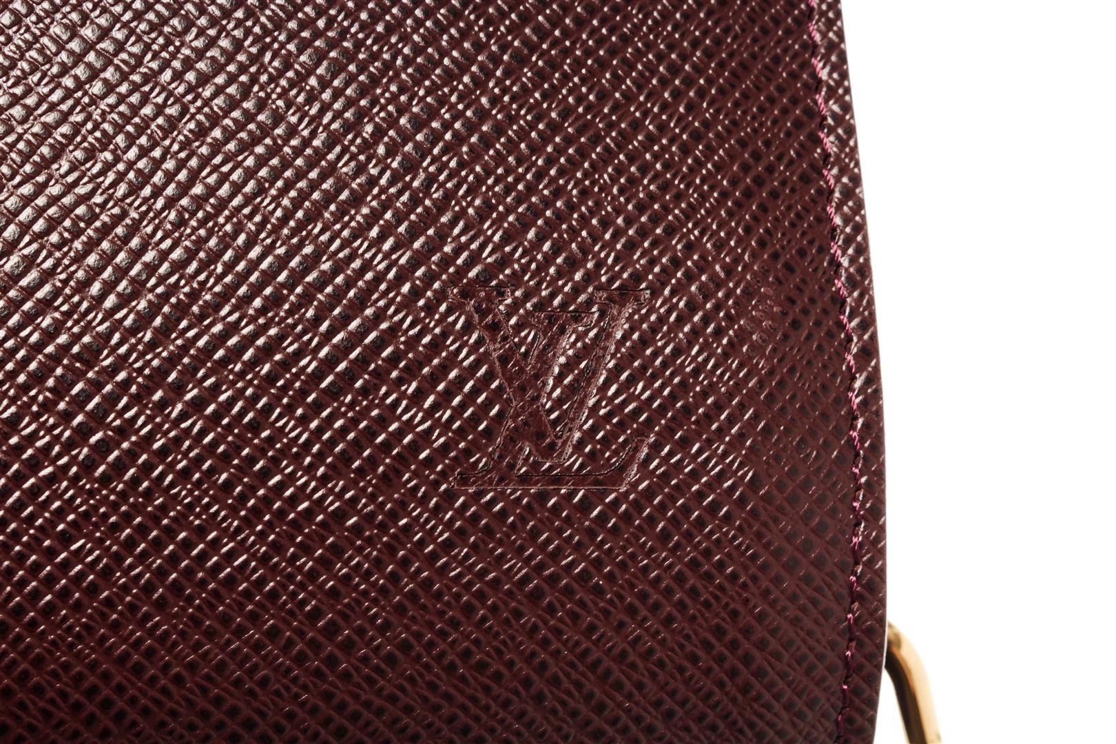 One Louis Vuitton Burgundy Taiga Leather Baikal Clutch. Item is sold AS-IS. All available information is listed in the description and shown in the photo. Louis Vuitton Red Leather Baikal Clutch with leather, gold-tone hardware, red leather trim, red taiga leather lining, three interior compartments pockets and a zipper closure.