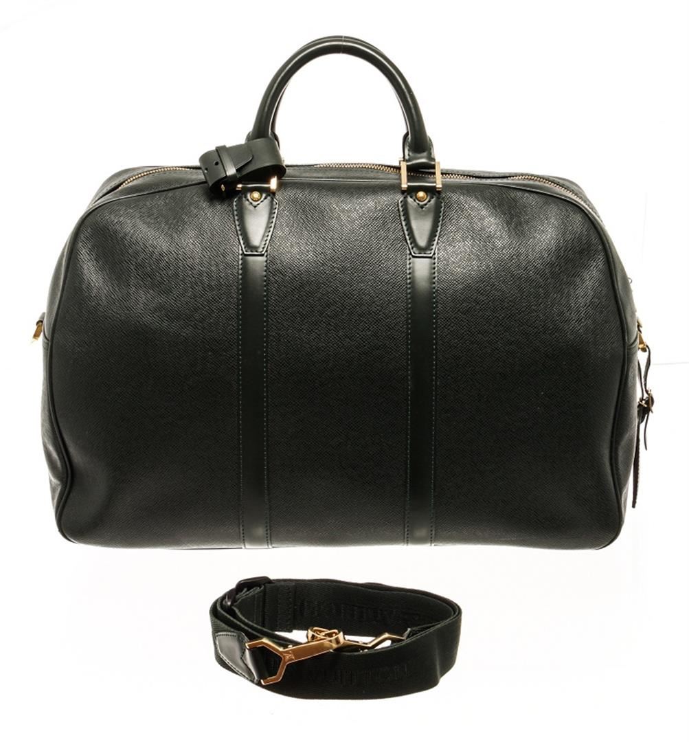 One Louis Vuitton Green Taiga Leather Kendall GM Bag. Item is sold AS-IS. All available information is listed in the description and shown in the photo. louis vuitton green taiga leather kendall gm bag with the kendall gm features a taiga leather body, rolled leather handles, and a top zip closure. Height: 12.6" Width: 17.7" Depth: 8.7, Handle Drop: 4.7" / 32 x 44.95 x 22.09 Cm