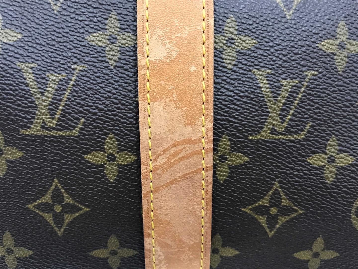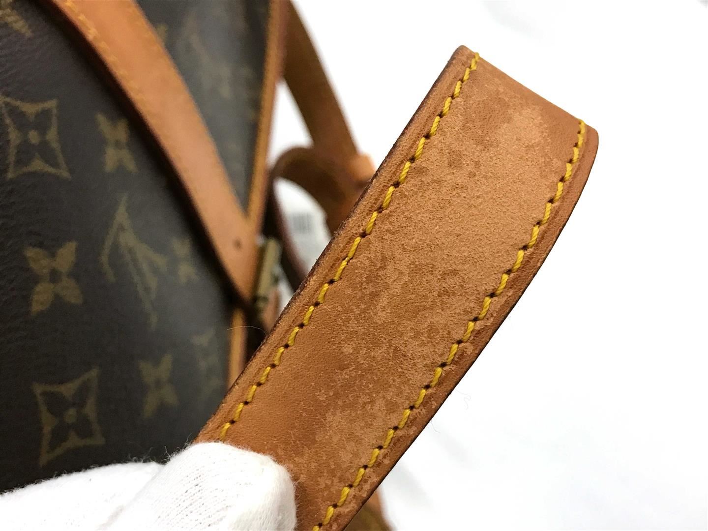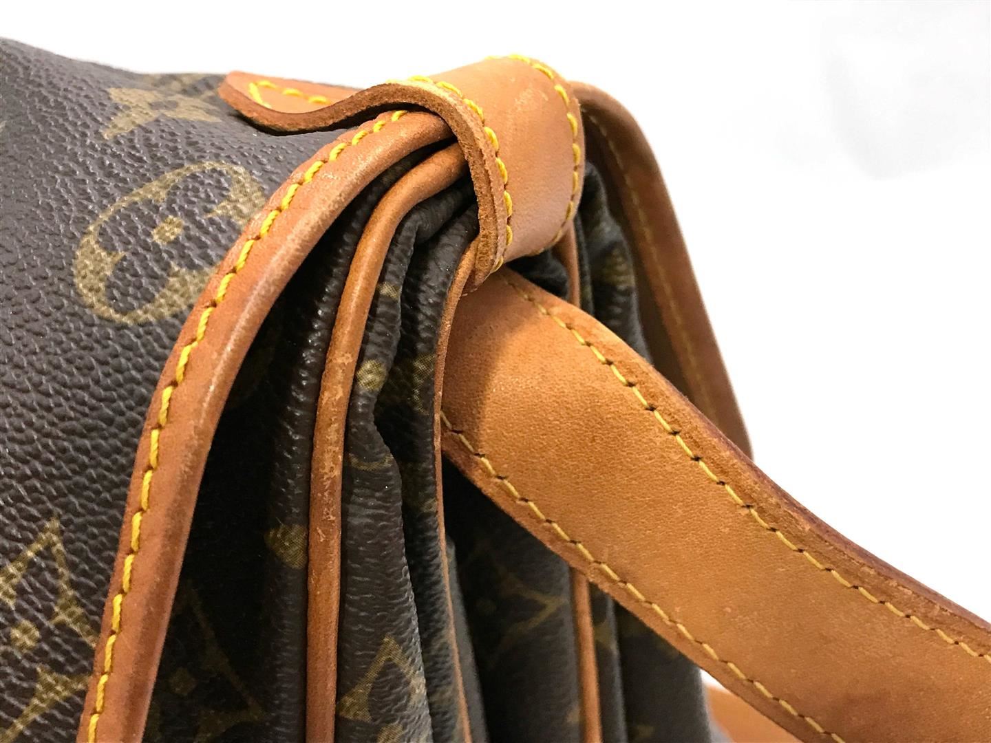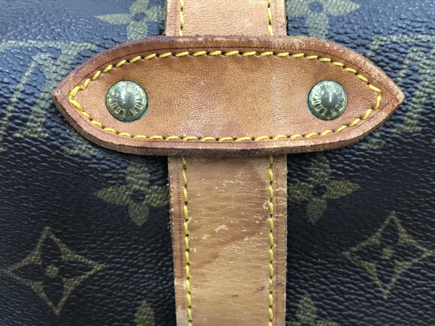 One Louis Vuitton Monogram Saumur 35. Item is sold AS-IS. All available information is listed in the description and shown in the photo. Louis Vuitton Monogram Saumur 35 with coated canvas exterior, brown fabric lining, contrasting vachetta leather trims and adjustable strap, gold-tone hardware, flap and buckle closure, and two main compartments, one on each side.