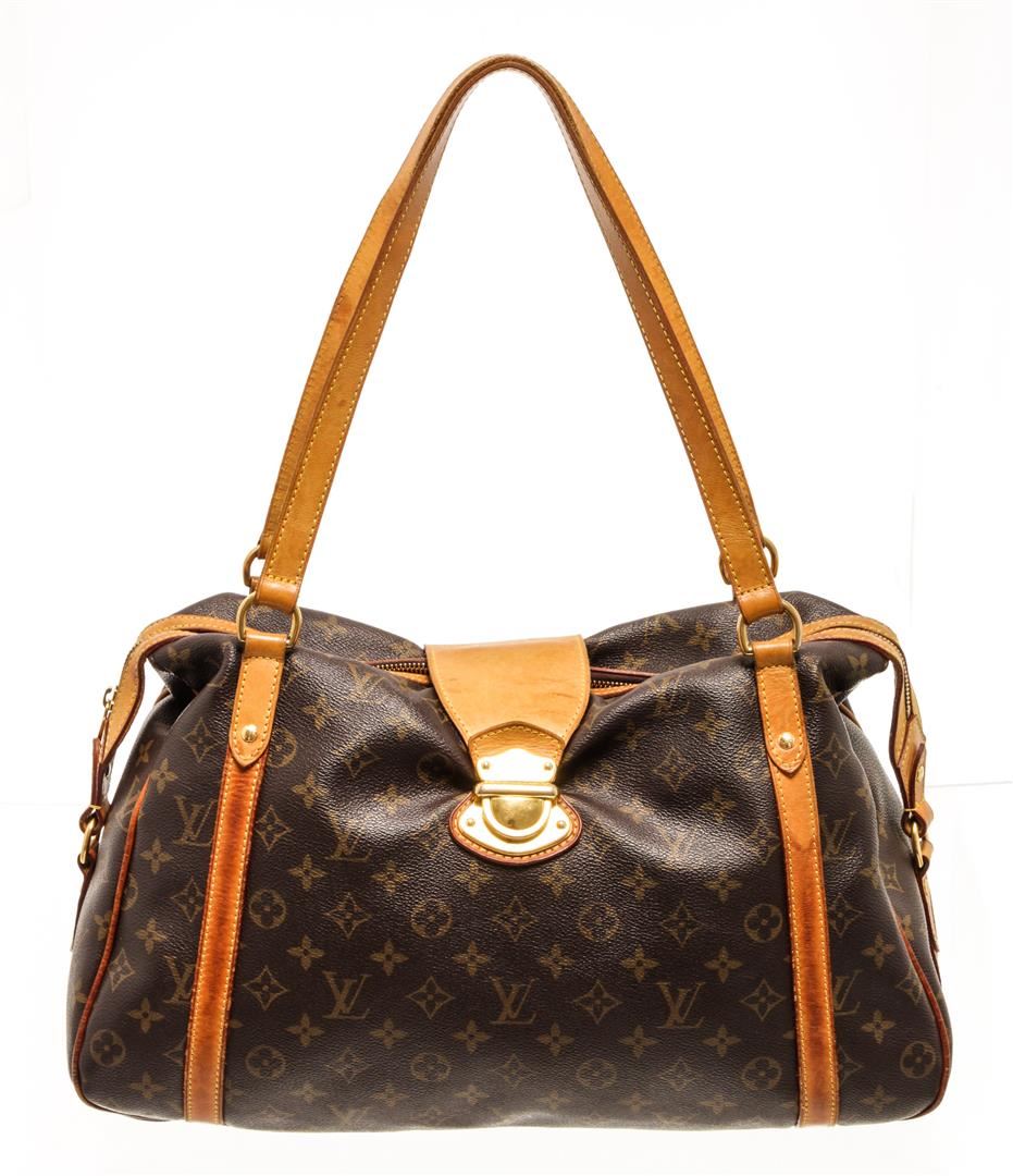 One Louis Vuitton Stresa MM. Item is sold AS-IS. All available information is listed in the description and shown in the photo. Louis Vuitton Stresa MM with vachetta top handle, zipper closure, gold-toned hardware, and brown fabric lining.