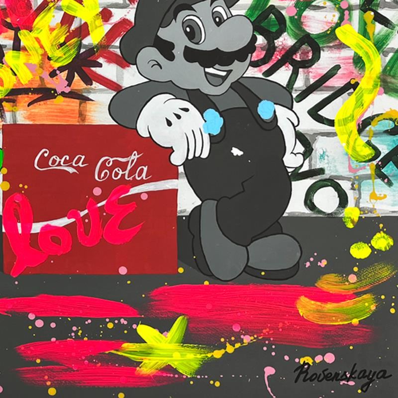 "Loving Coca Cola" is a one-of-a-kind mixed media on deckle edge paper by Nastya Rovenskaya; hand signed by the artist. This piece comes custom framed and includes letter of authenticity. Measures approximately 36" x 46" (framed), 30" x 40" (image). This item requires special handling and may have a longer than usual turnaround.