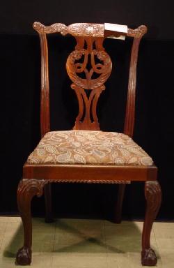 , pierced back, carved crest, also carved front cabriole legs terminating in claw/ball feet, English, circa 1780-1790.