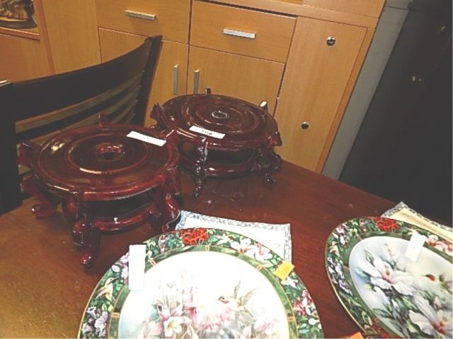 MAHOGANY PLANT STANDS - 6" DIAMETER & 4" DIAMETER - 2 PC SET - NEW