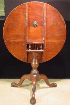 on pedestal with tripod terminating in ball claw feet, carved at the knees, height 27 ½", diameter 32", American (New York State), 1760-1780.