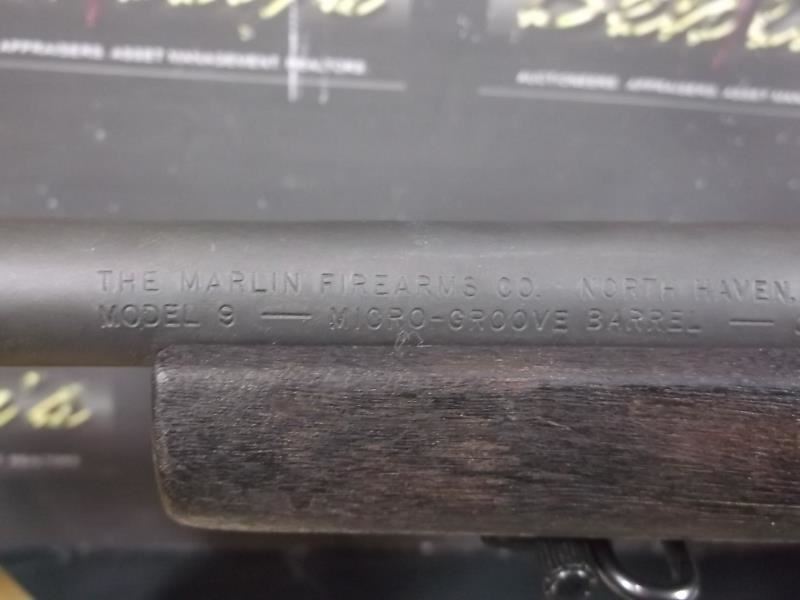 MARLIN 8 CAMP 9 9MM SEMI AUTOMATIC RIFLE, USA, SIMMONS SCOPE, 3-9X50 BLAZER, S/N: 11568033 (print sequence:) 14 - 1024 - 1025