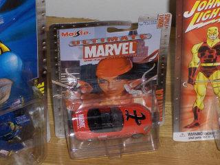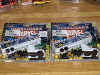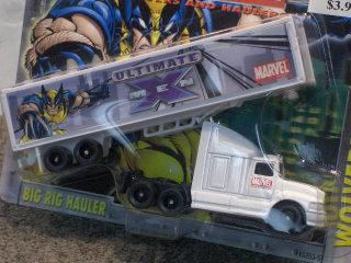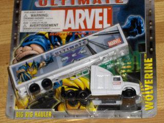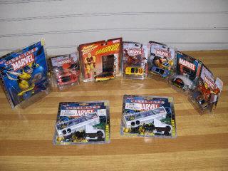 This lot contains Ultimate Marvel’s Die Cast cars of Elektra, Daredevil (2 different ones), Thor and Iron Man, Johnny Lightning’s Daredevil car, Wolverine Jet and Wolverine’s Big Hauler Transport Truck (2 of the same).