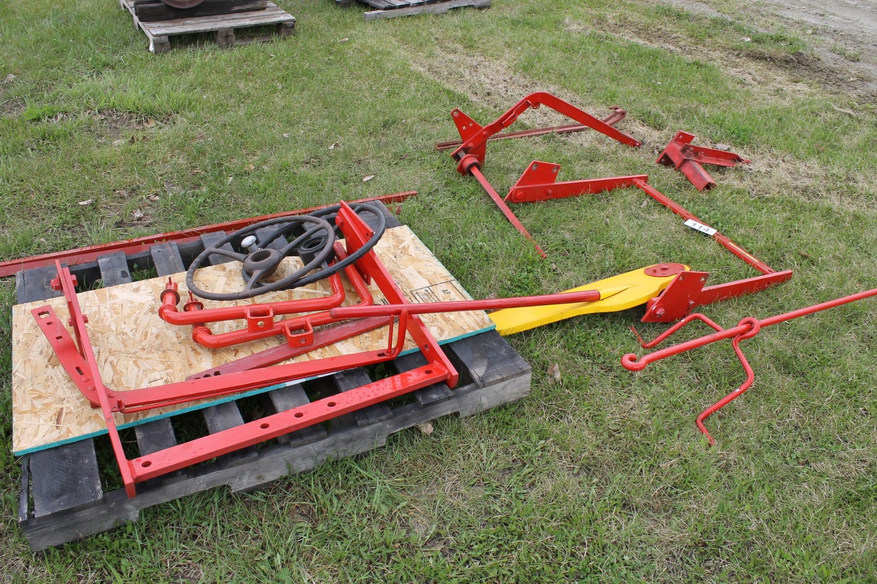 MASSEY HARRIS DRAW BAR, ATTACHMENTS & STEERING WHEELS