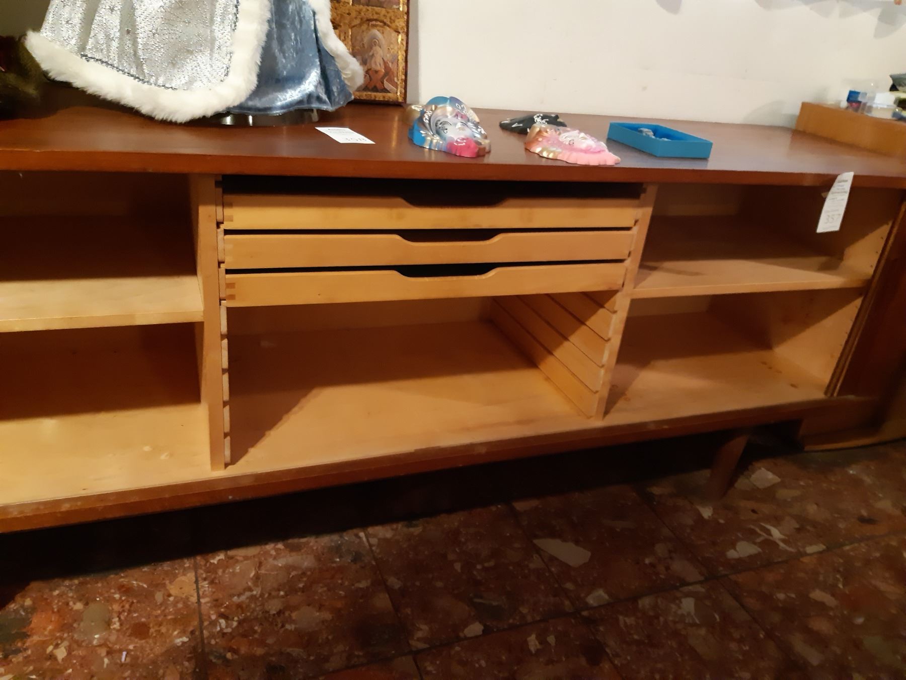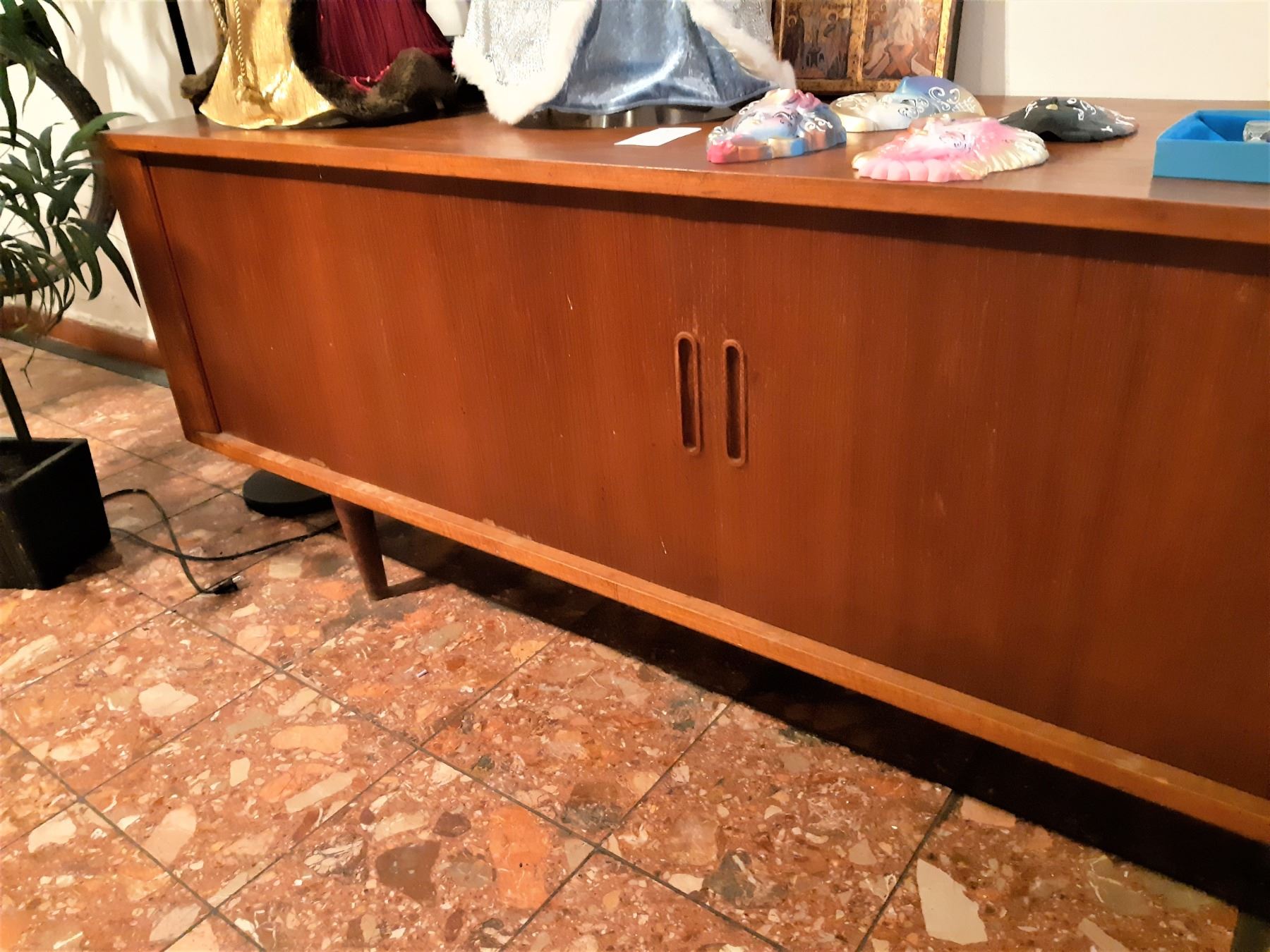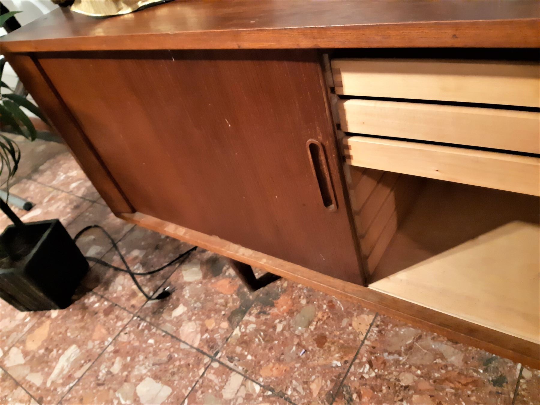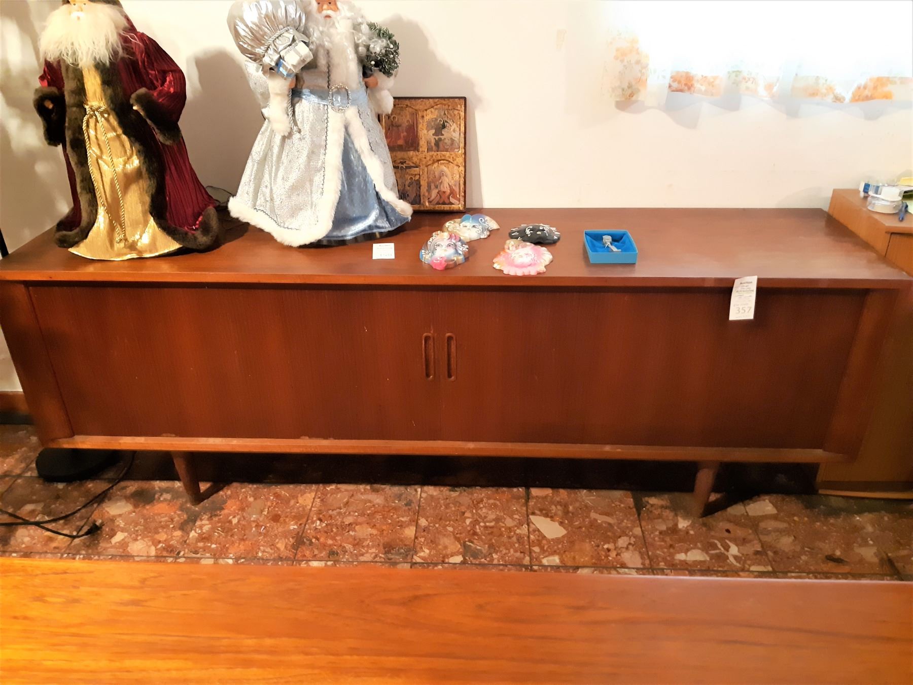 Made in Denmark, has 2 Sliding doors, note the right door needs minor repair. Note scratches and marks 82x20x29 bring help to remove and pickup at 11 am