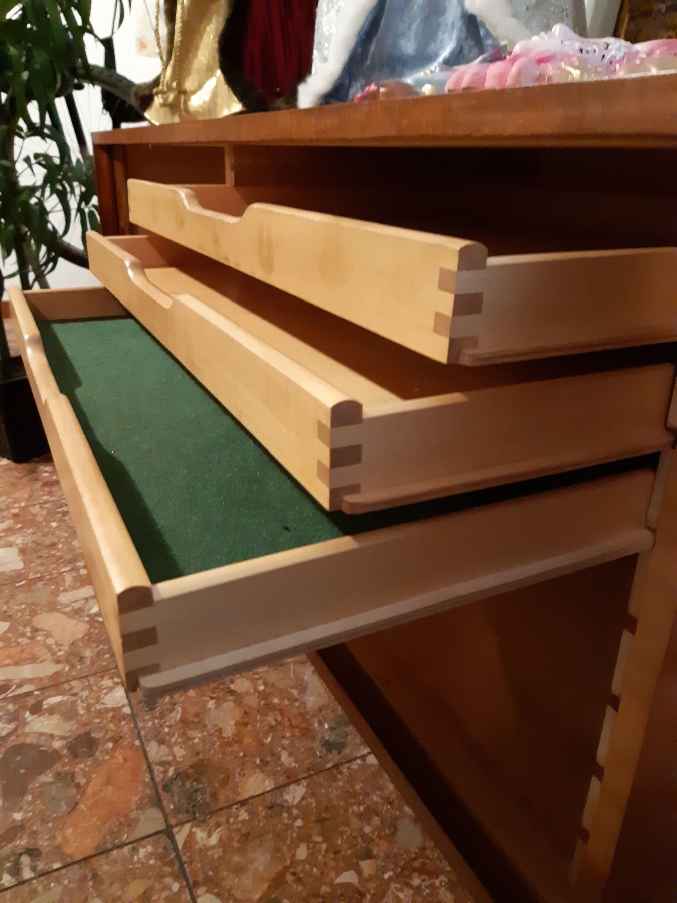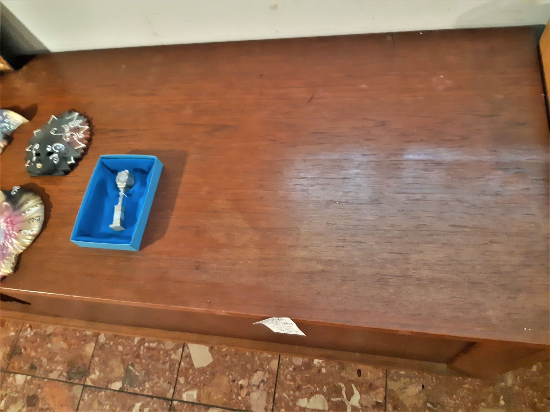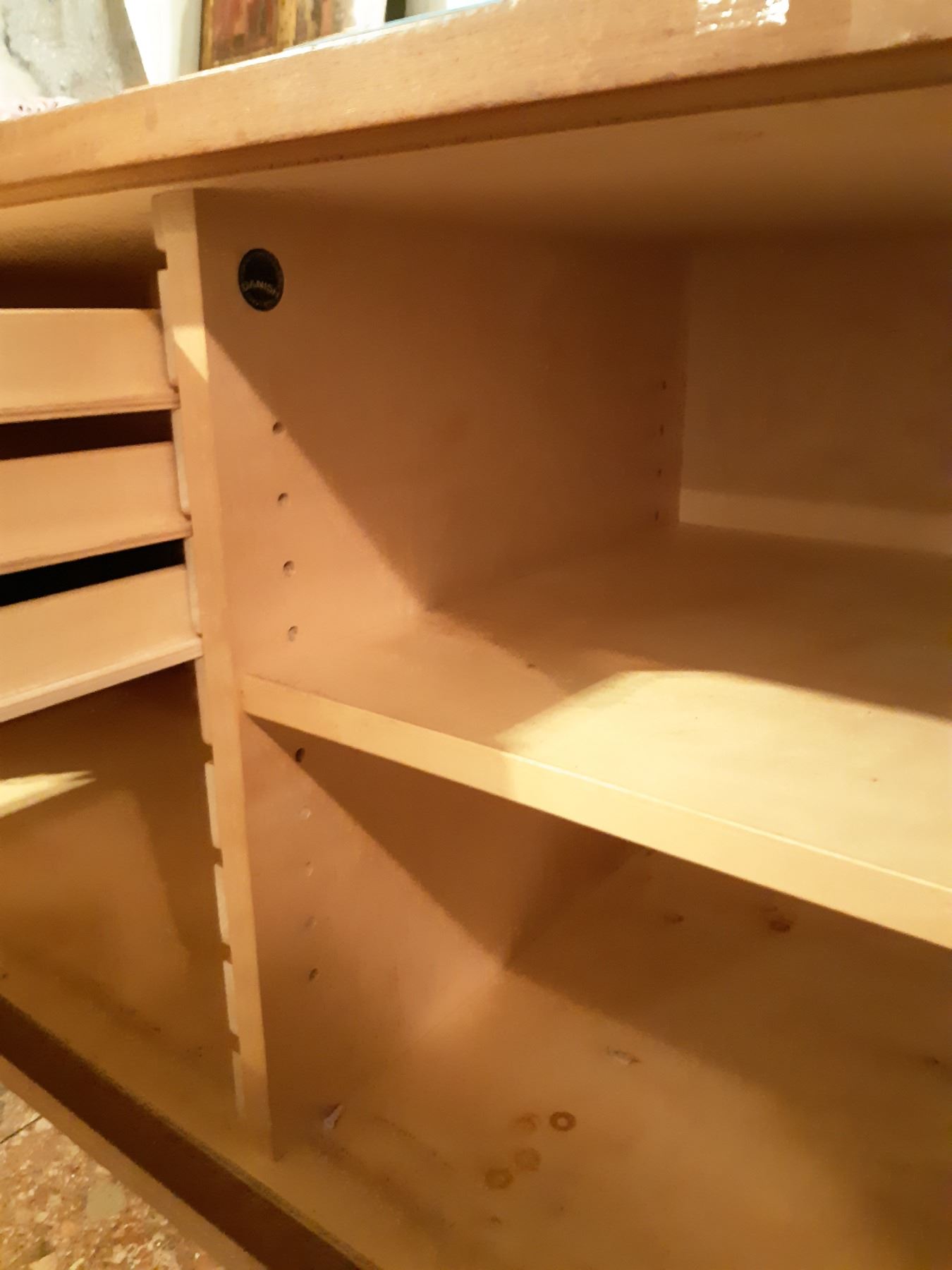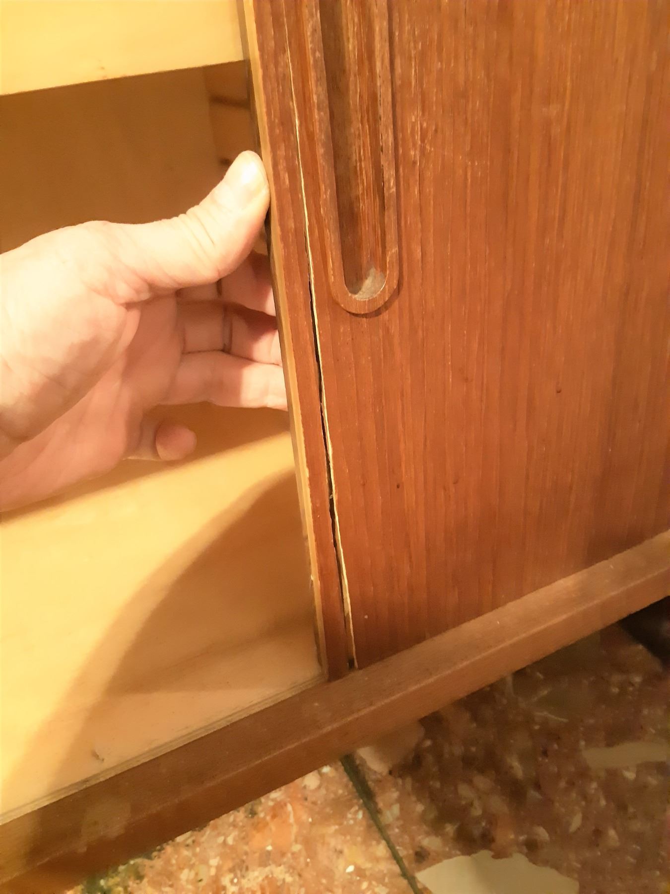 Made in Denmark, has 2 Sliding doors, note the right door needs minor repair. Note scratches and marks 82x20x29 bring help to remove and pickup at 11 am