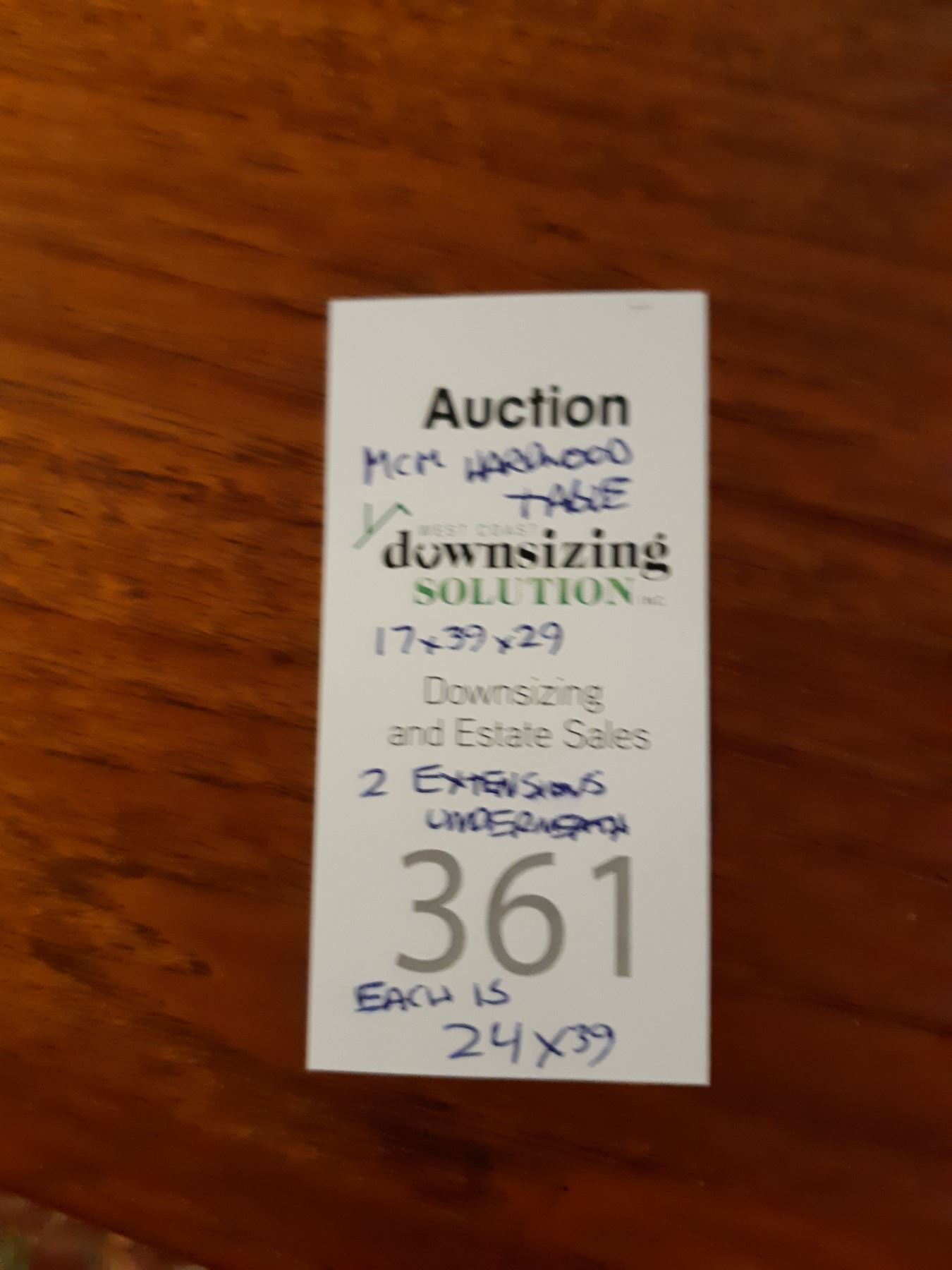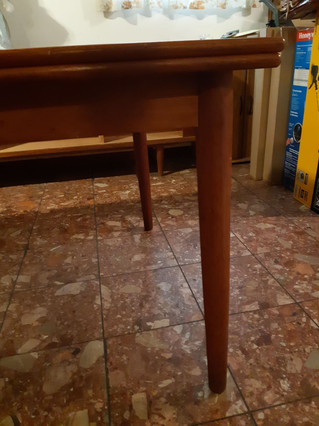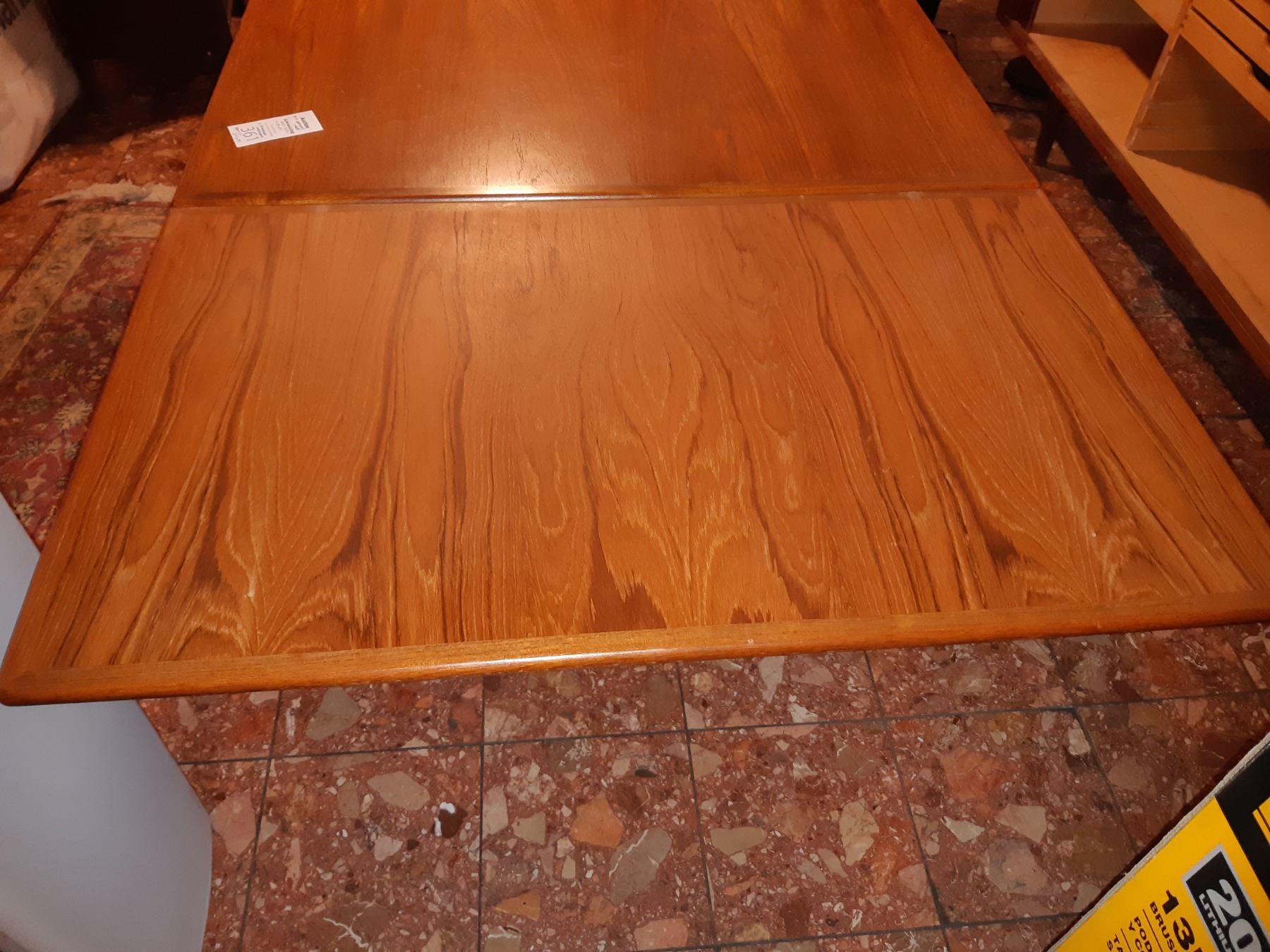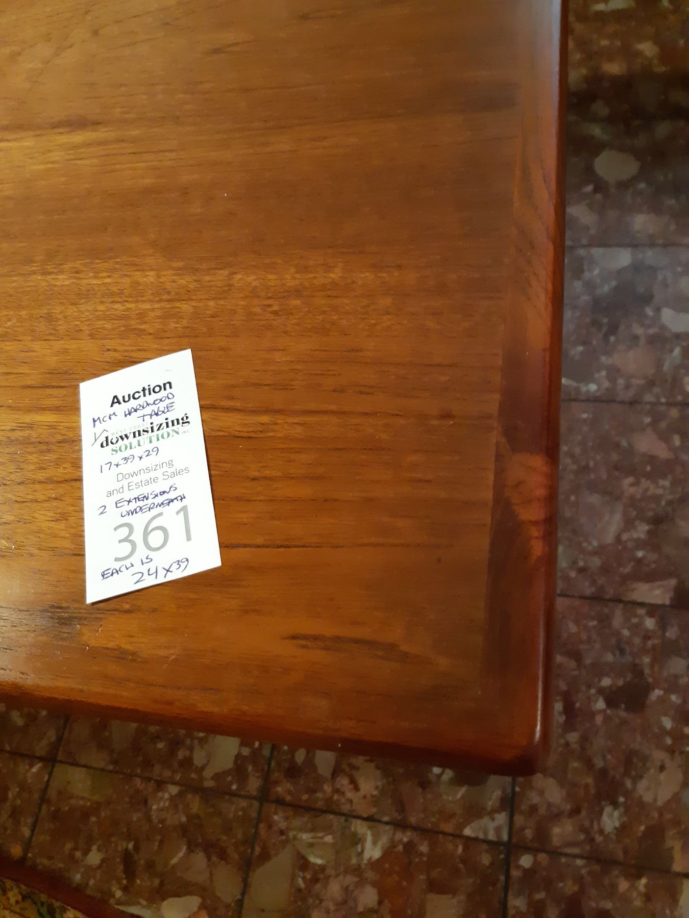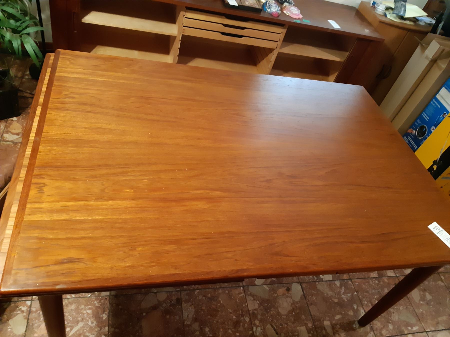 From Denmark table has 2 pull out extensions measuring 24x39 ea. table 17x39x29. Note scratches. Pickup at 11 am