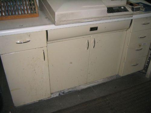 METAL & FORMICA COUNTER W/ DRAWERS, DOORS