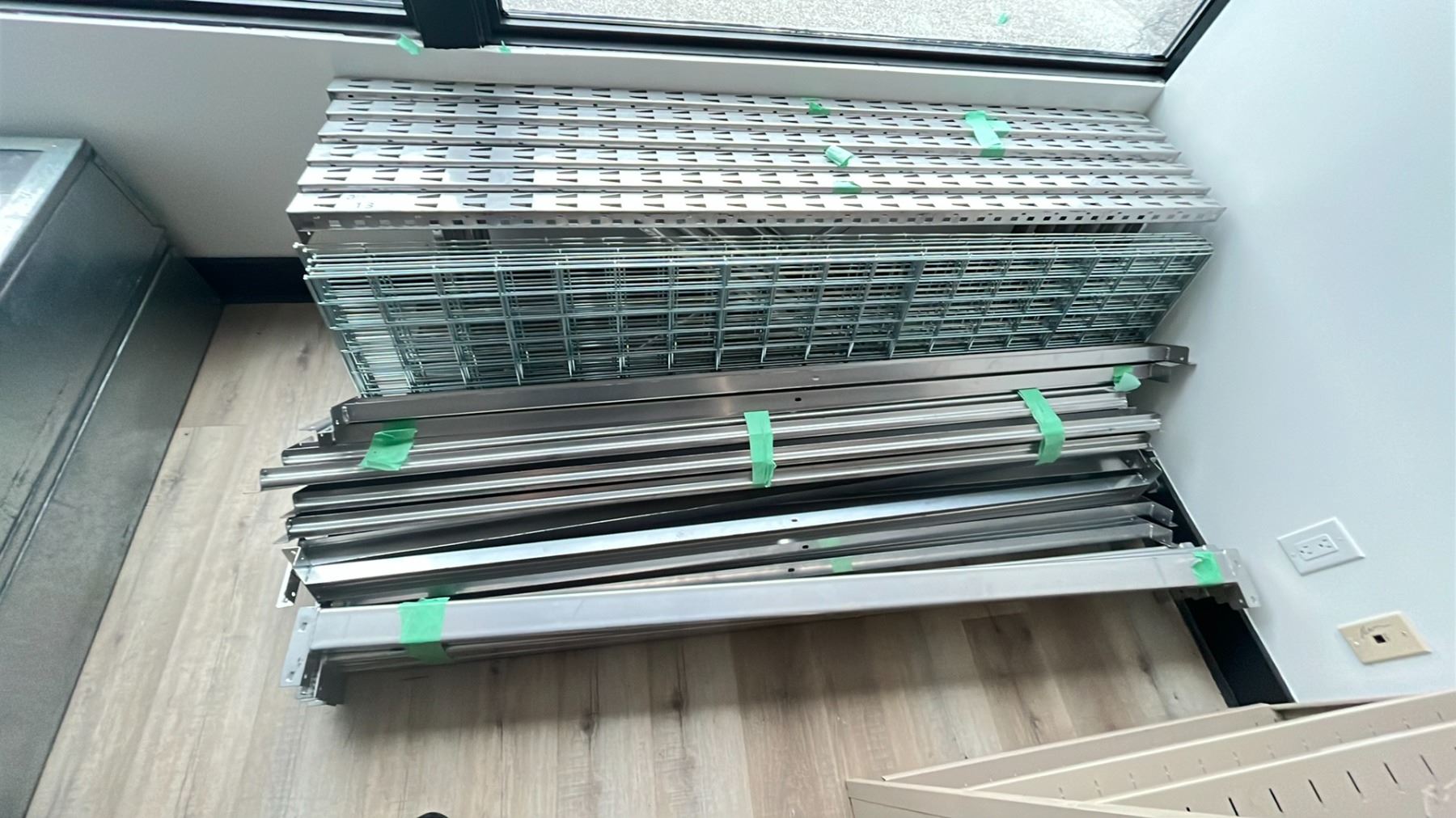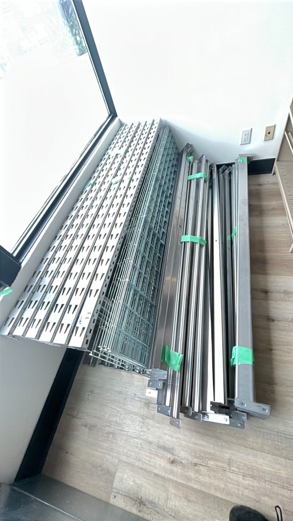 METAL SHELF RACKING SYSTEM - (6) 6FT X 2FT UPRIGHTS, APPROX. (22) 6FT SIDE RAILS & (12) 6FT MESH DECK SHELVES