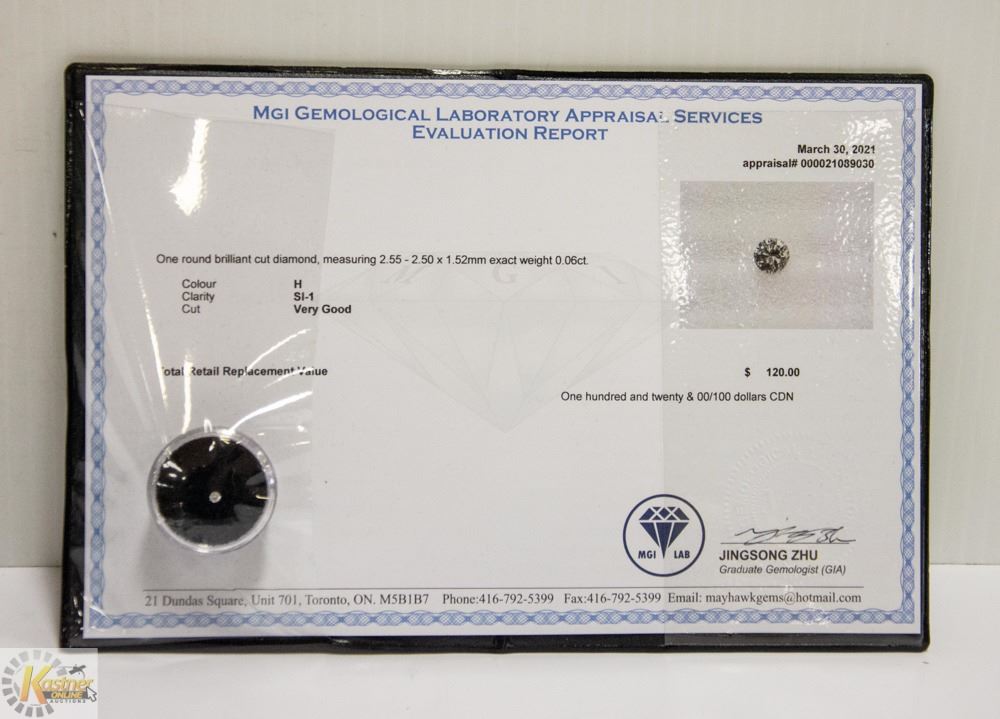 MGI LAB APPRAISED COA GENUINE 0.06ct DIAMOND