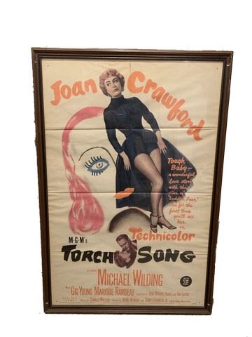 MGM's "Torch Song" (1953) starring Joan Crawford, original, framed Litho movie poster. Poster has been protected by the frame for many years as this hung on the walls of the Debbie Reynolds Dance Studio. Numbered 53/519.
