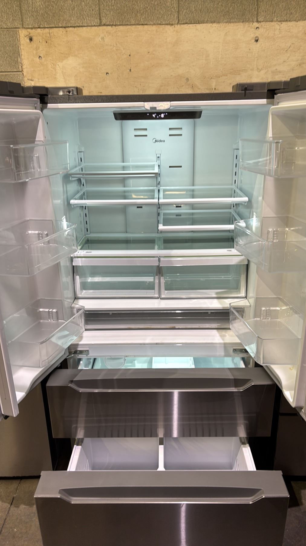 MIDEA 36"W STAINLESS STEEL FRENCH DOOR REFRIGERATOR WITH 2 BOTTOM FREEZER DRAWERS