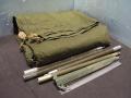 MILITARY SURPLUS AUCTION- (APPROX 104)SHELTER HALF TENTS WITH STAKES & PINS, PINS ARE 15 3/ 4" LONG, STAKES ARE 9" LONG