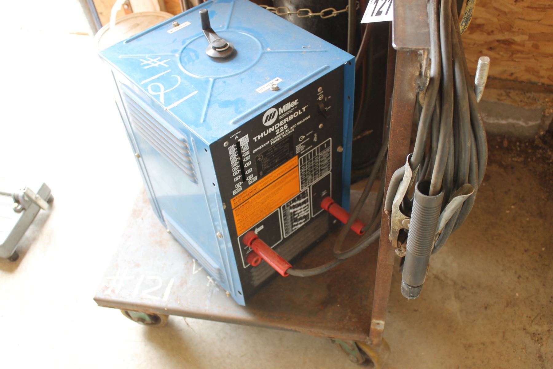 MILLER THUNDERBOLT 225 WELDER C/W ROLLING CART & CABLES