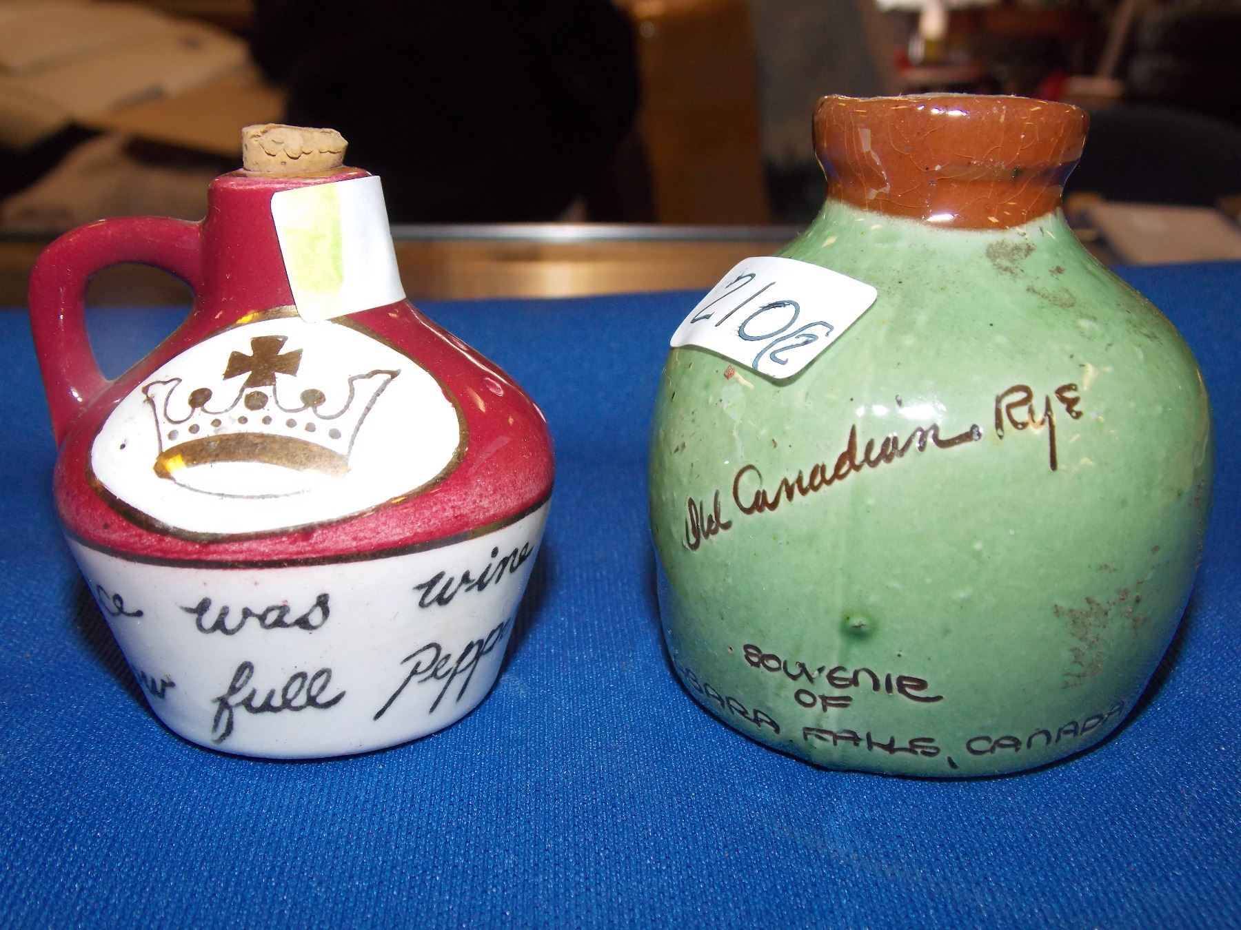 MINITURE CLAY WHISKEY JUGS - 2 TTL