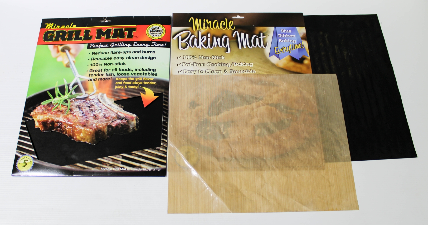 INCL. 1 MIRACLE BAKING MAT LIGHTLY USED - 1 NEW GRILL MAT & 1 GRILL MAT LIGHTLY USED
